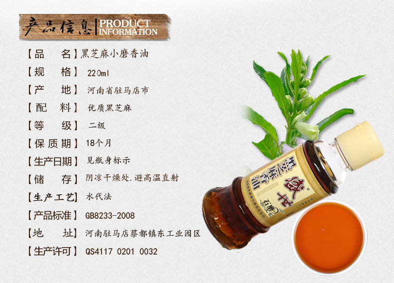盛世黑芝麻石磨小磨香油純芝麻油食用植物油禮盒220ml*6