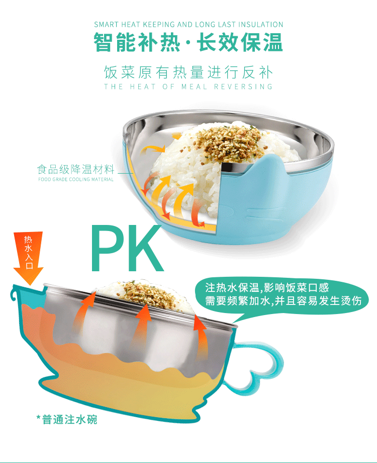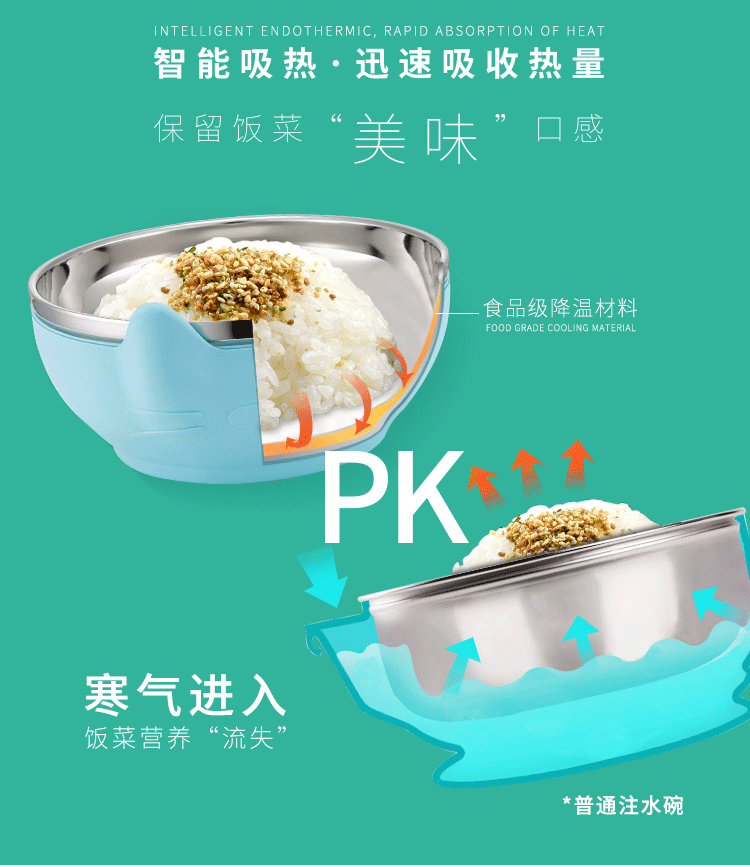 4、添加食品級特殊調溫材料,安全降溫,無需攪拌也能讓滾燙食物快速降溫并長時間保持最佳口感溫度,讓食物更為美味