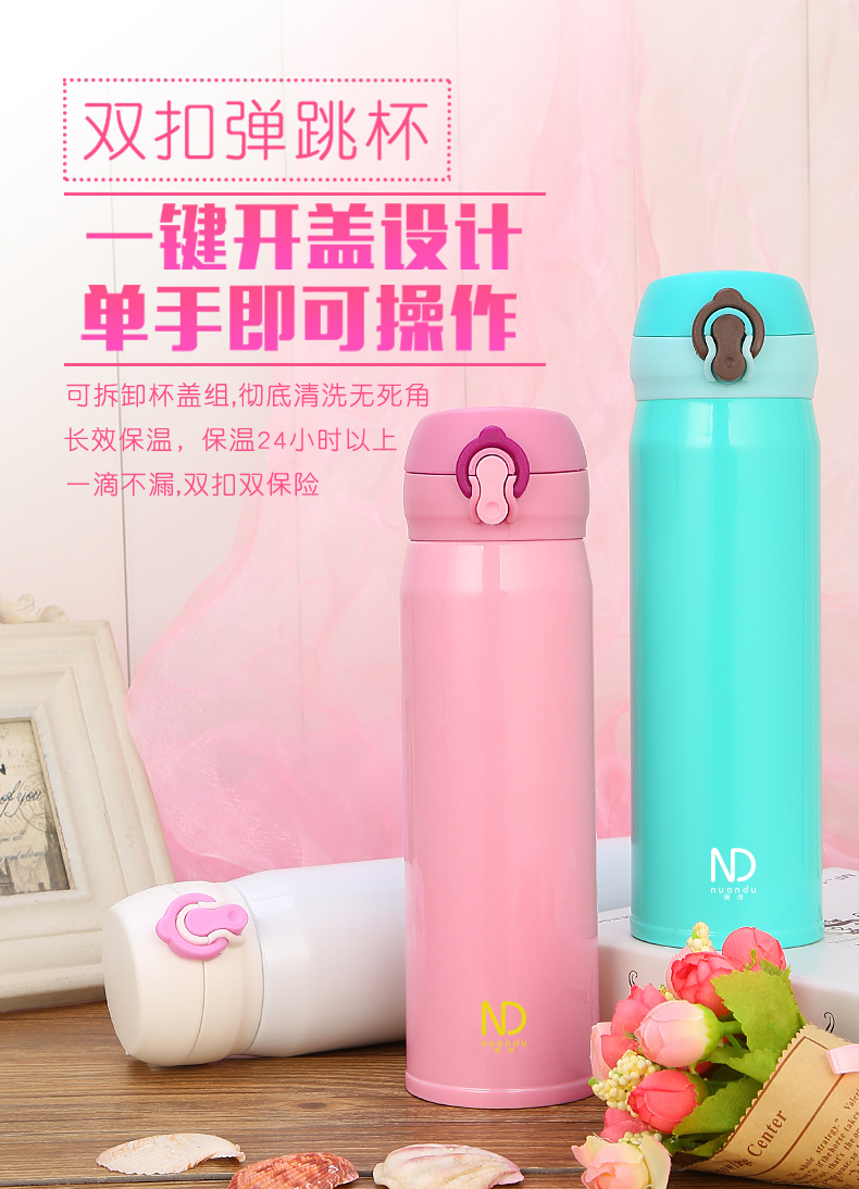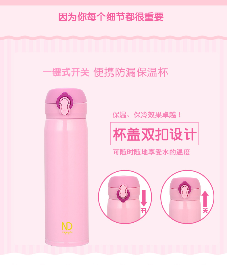 1、杯蓋時下最流行雙扣設計,方便攜帶飲用。