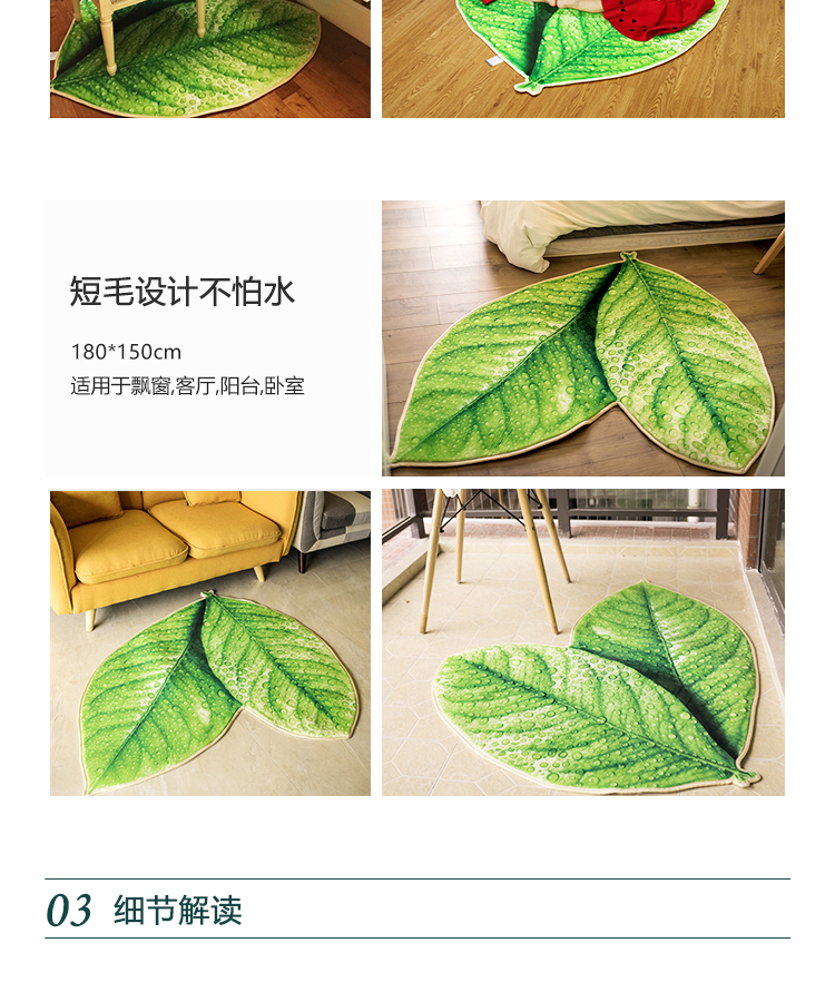 趨然(榆葉)創意綠色樹葉子地墊 個性加厚海綿浴室廚房走廊壁爐毛絨地毯