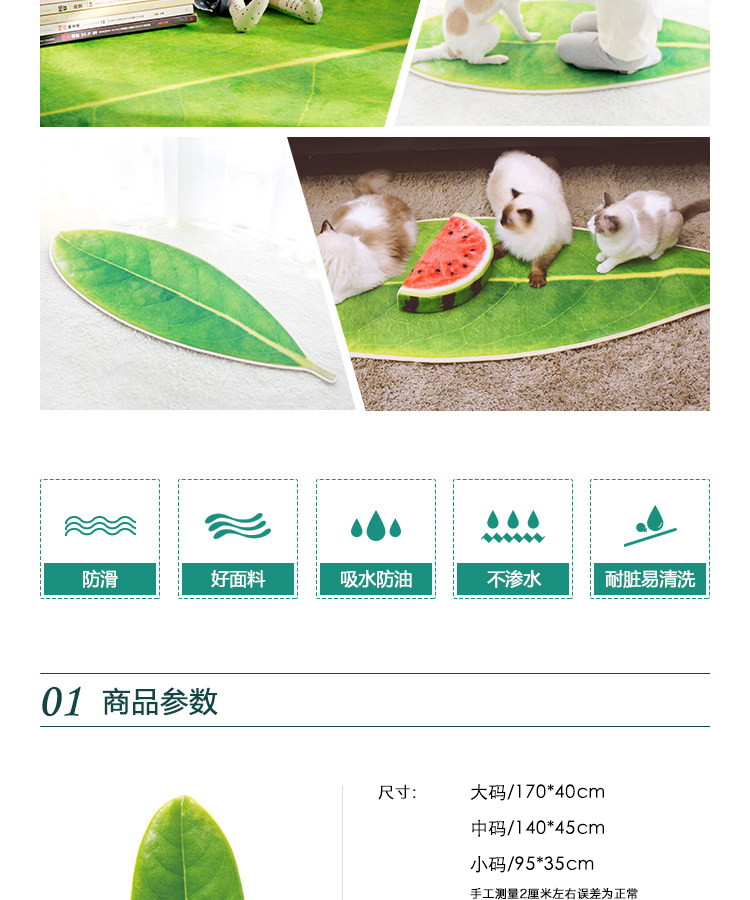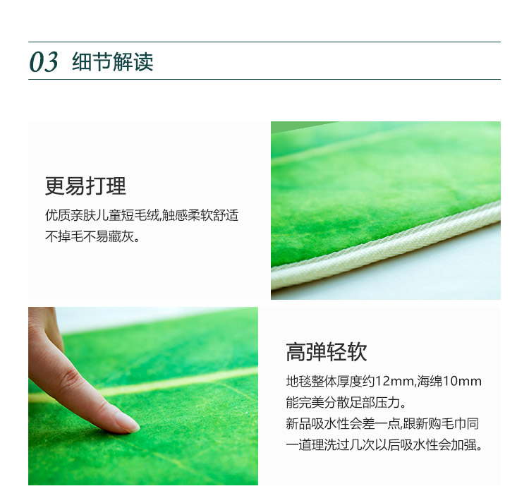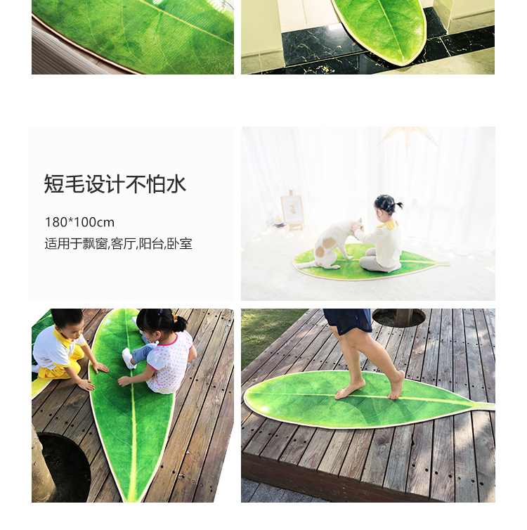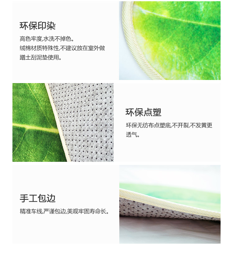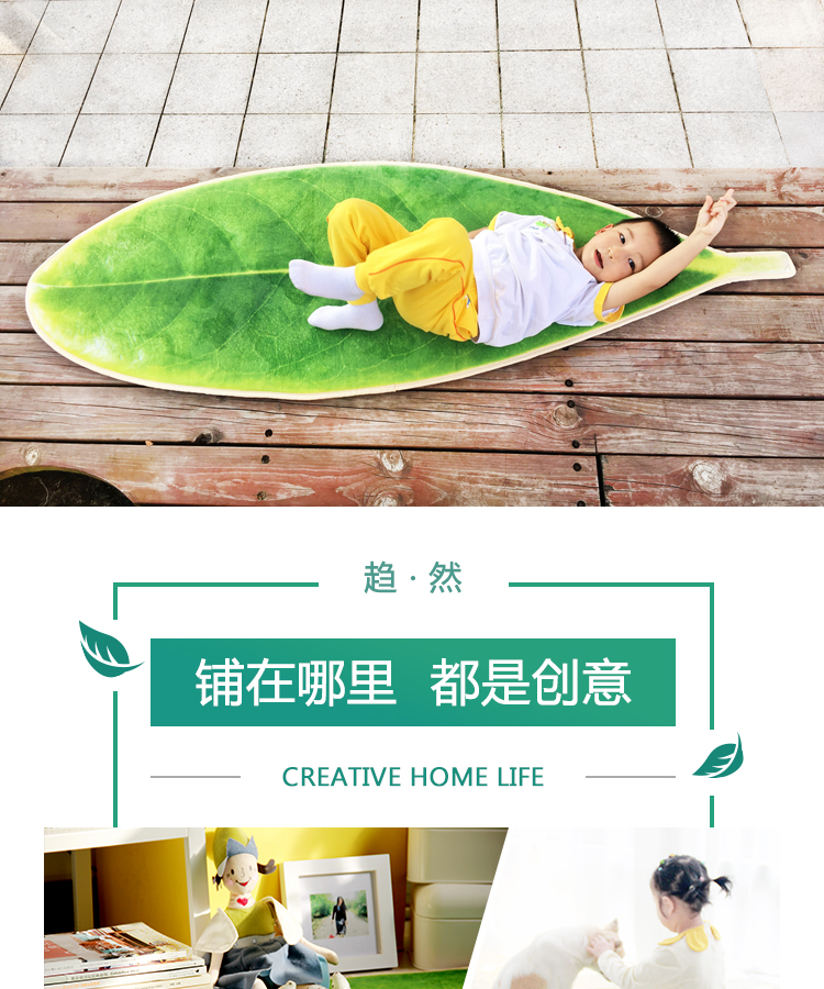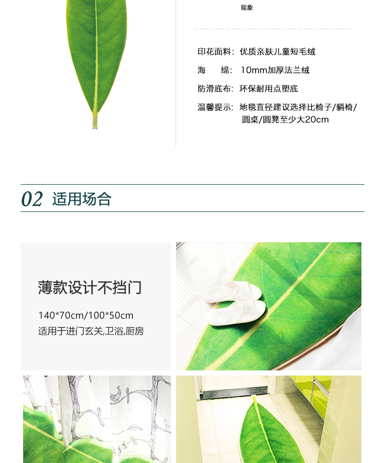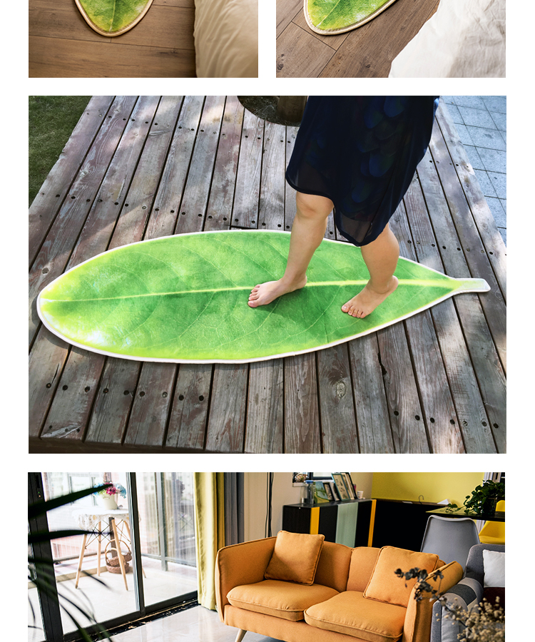 趨然(嫩芽葉)地墊腳墊進門墊3D葉子印花寶寶爬行防滑客廳地毯