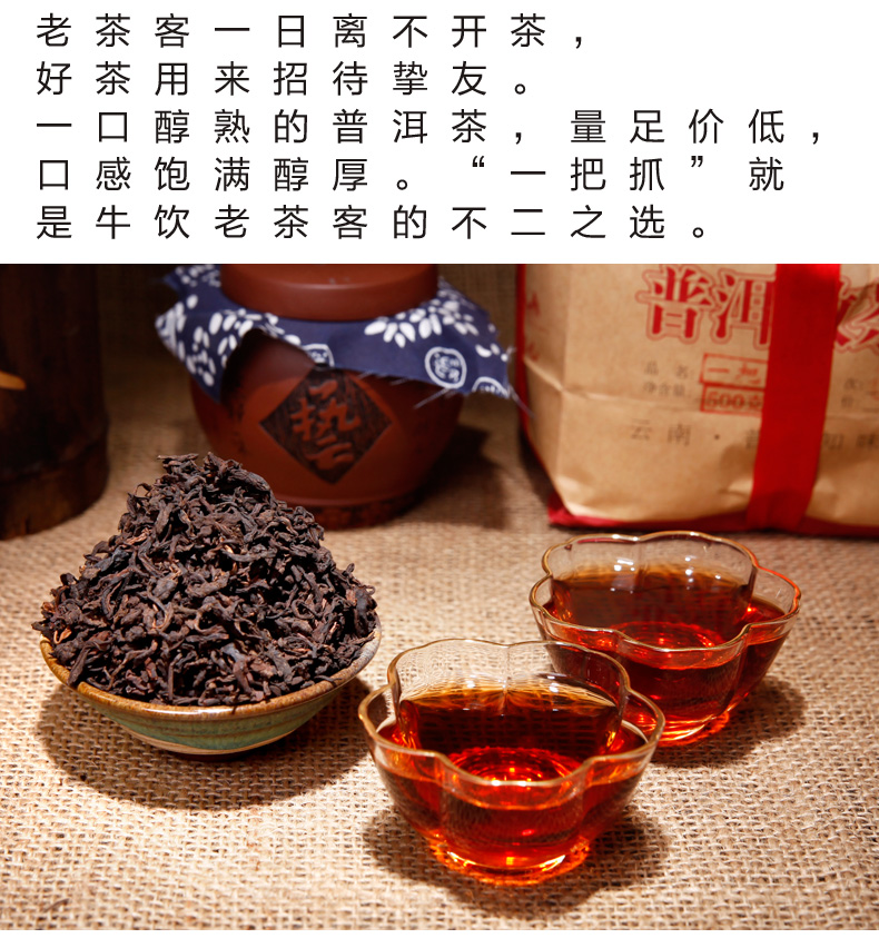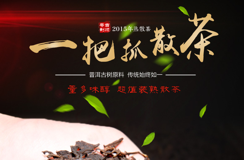 廠家直銷】云南 普洱 茶 熟茶 2015年一把抓500g陳年普洱散茶批發 【貨號】01
