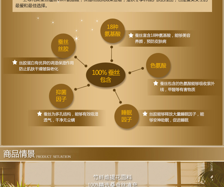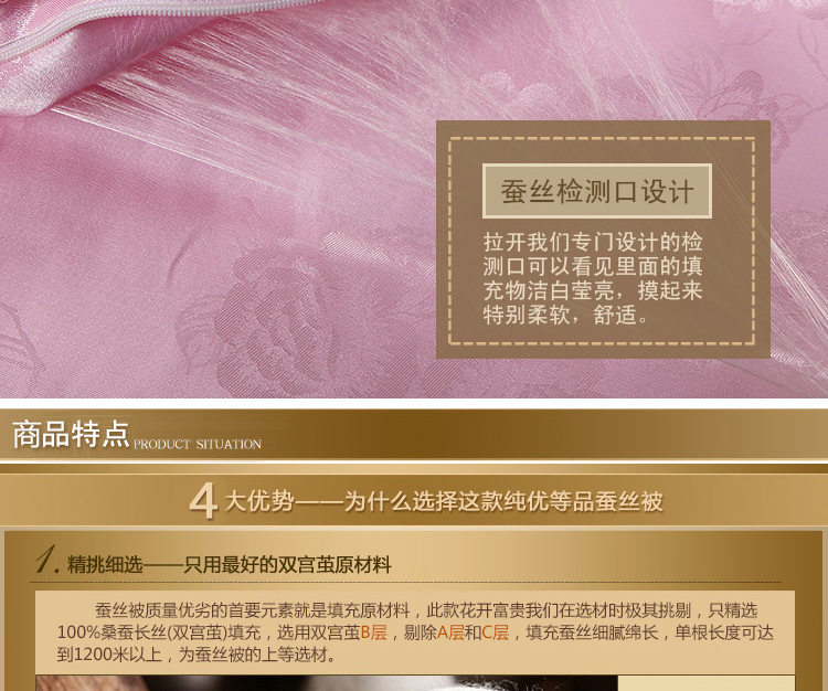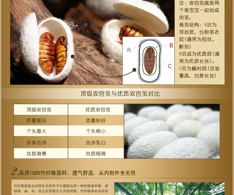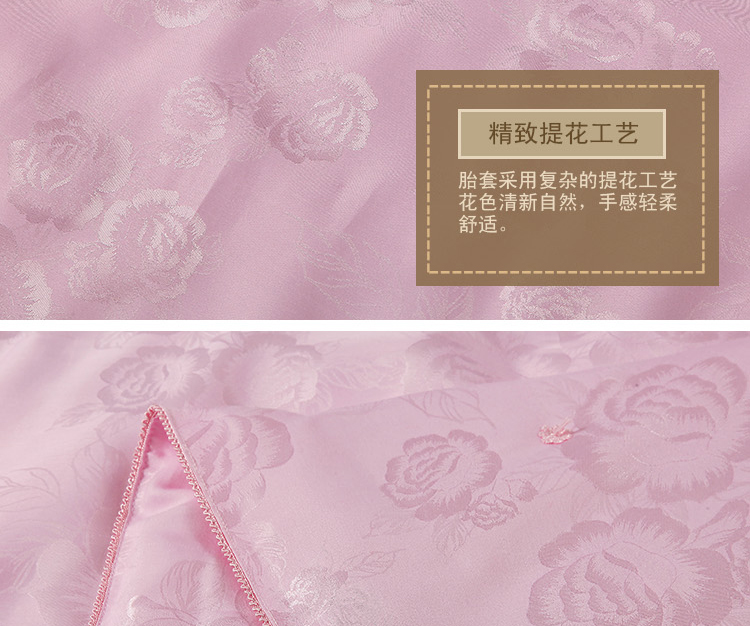 竹纖維提花面料,填充100%蠶絲,抗菌出螨,吸濕除臭,美容養顏