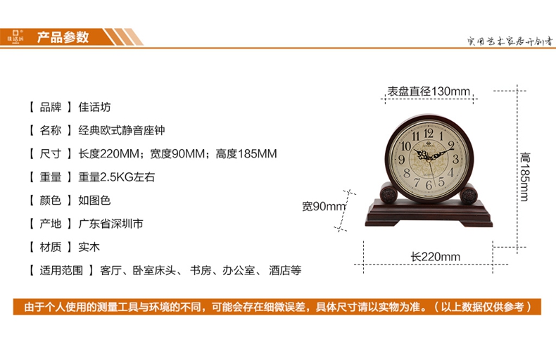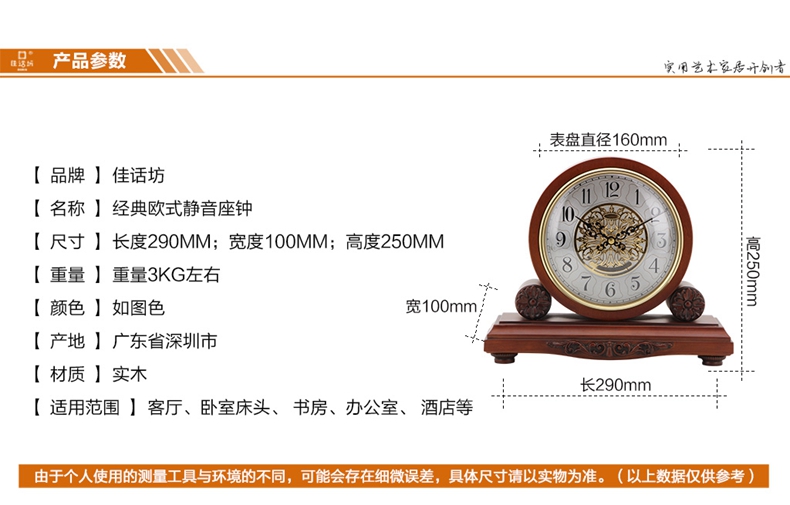 佳話坊金屬座鐘客廳歐式裝飾擺件臥室靜音時鐘鐘表坐鐘臺鐘