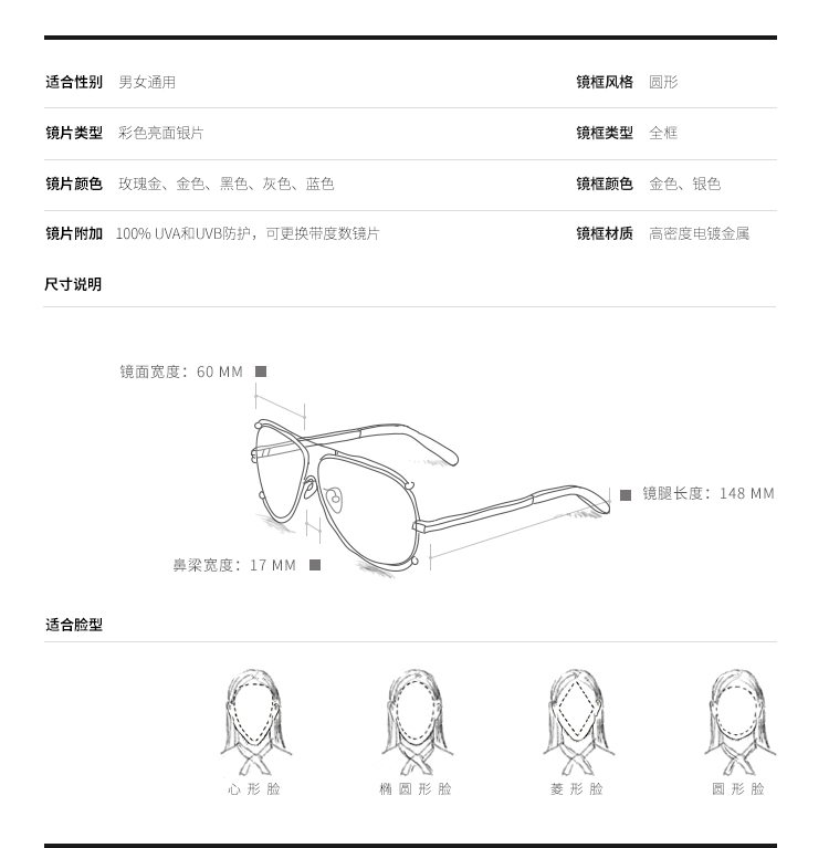 眼鏡形狀: 飛行員式