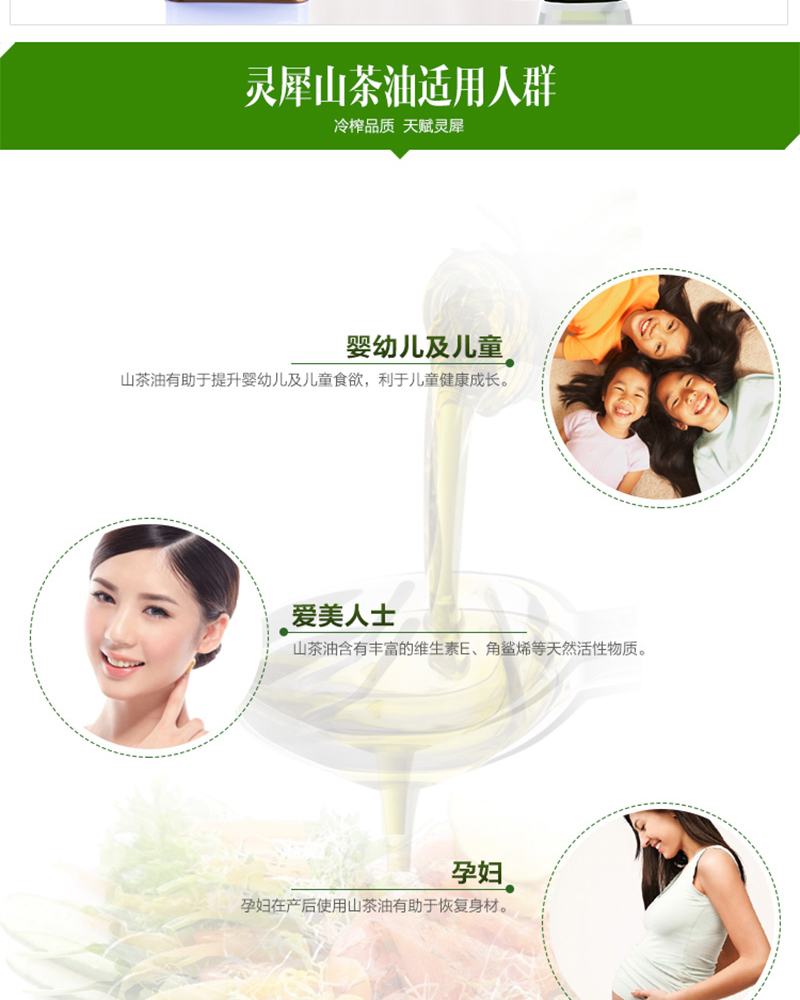 2.食用價值:長期食用山茶油可以預防三高,清理血管敗壞細胞,在醫學界山茶油被稱為”血管清道夫“。還有“月子油”、“腦黃金”、 “長壽油”等之稱。