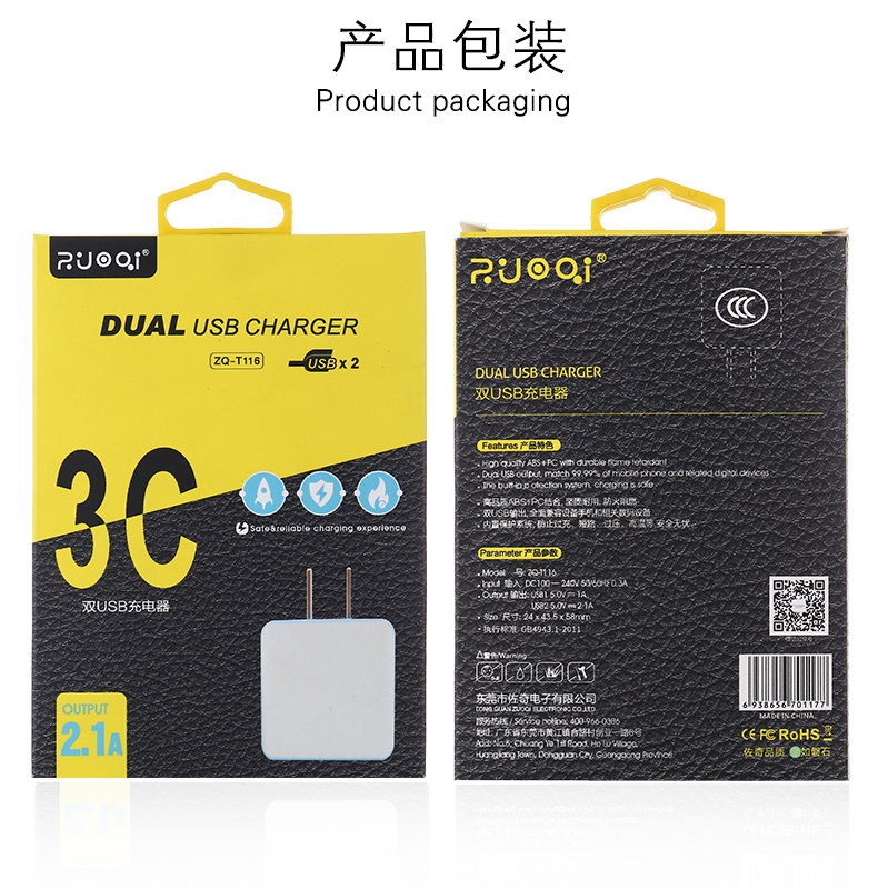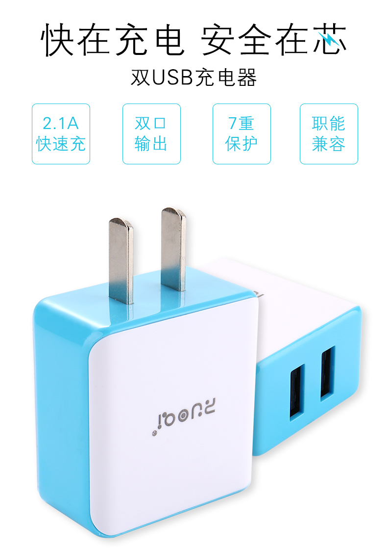 手機充電器 雙usb充電頭 手機快充2.1A 過3C認證廠家直銷