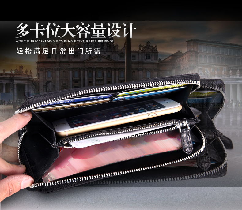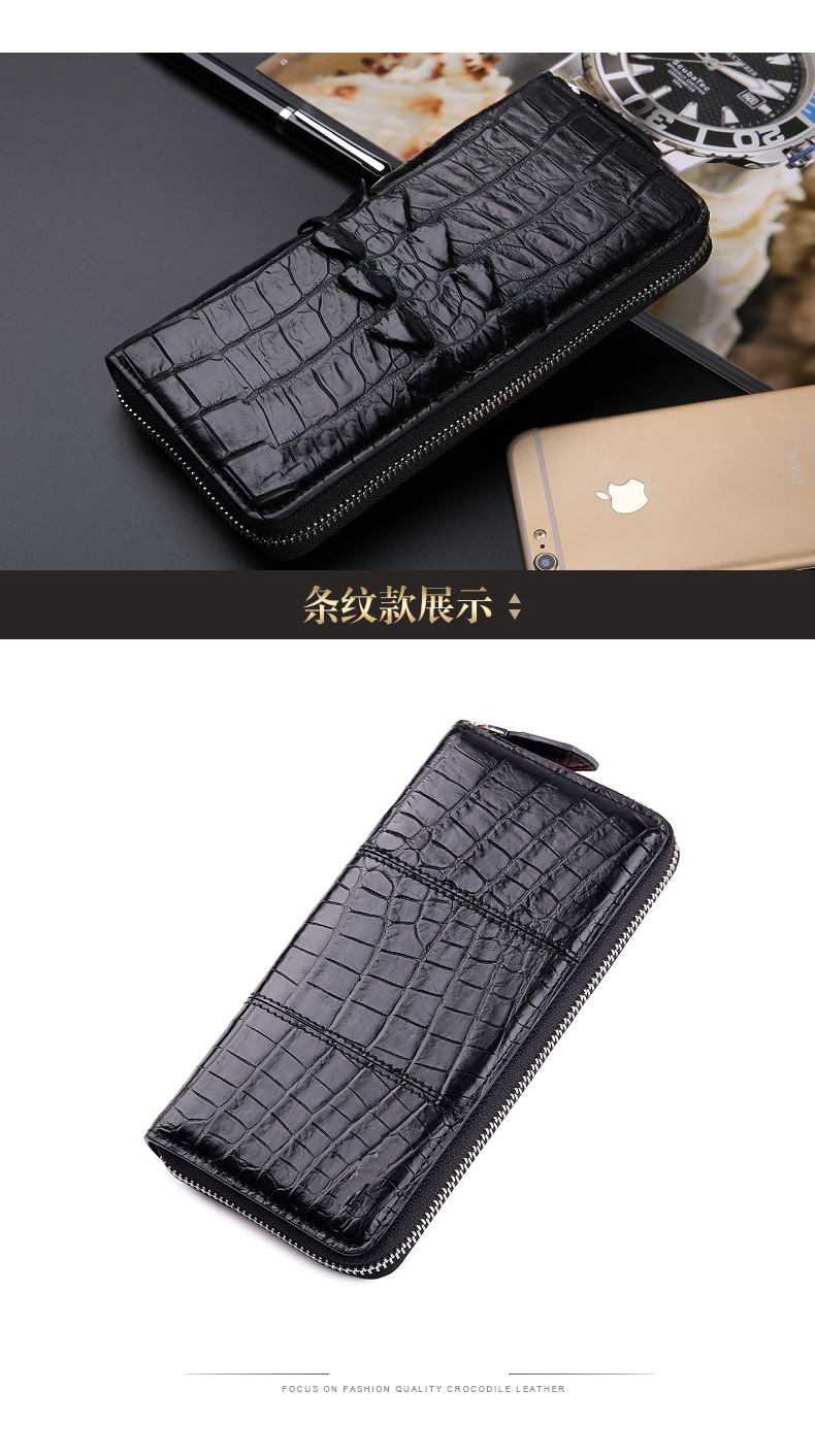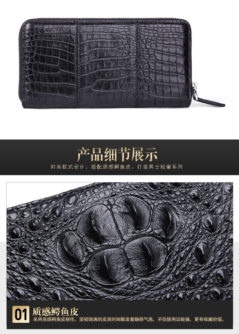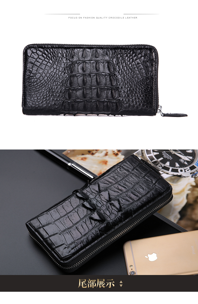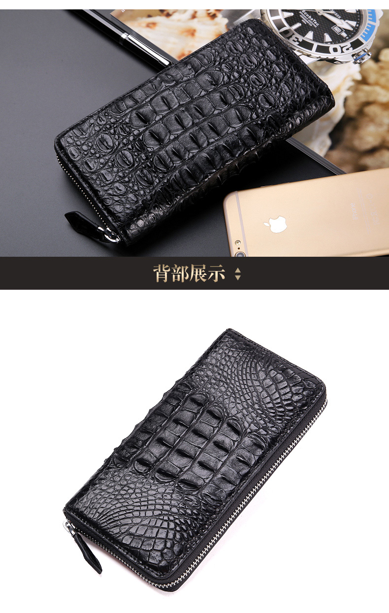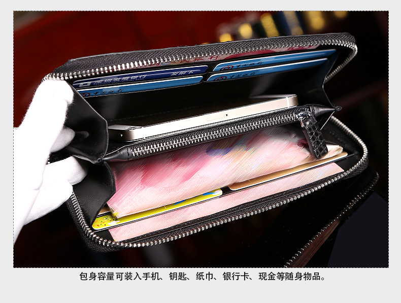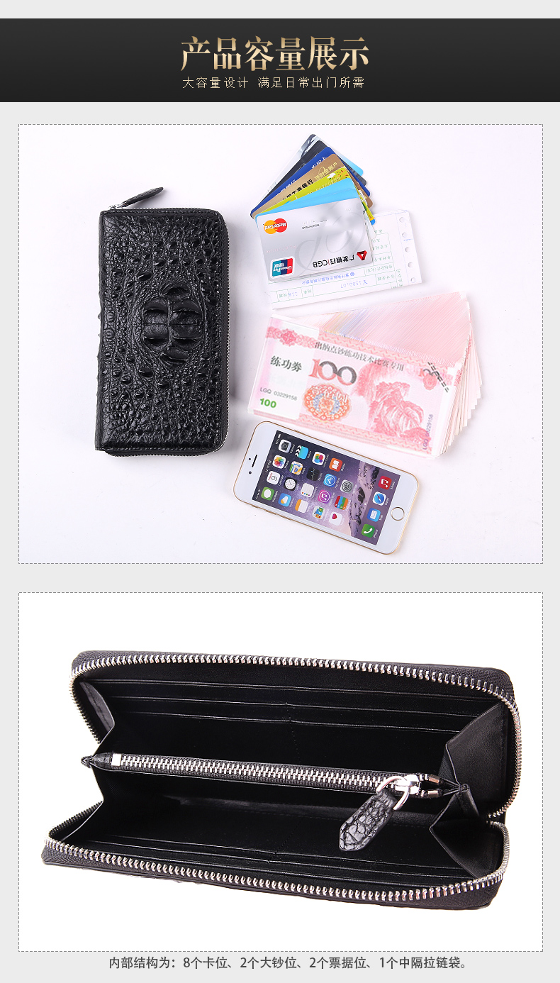 貨號:SI092規格:19.5cm寬x10cm高x2.3cm厚面料:鱷魚皮內襯:牛皮用途:商務、休閑容量:可放入手機、鑰匙、紙巾、打火機等隨身物品結構:8個卡位、2個大鈔夾、2個票據位、1個中隔拉鏈袋溫馨提示:尺寸均為手工測量,若有誤差,敬請諒解,一切以實物為準