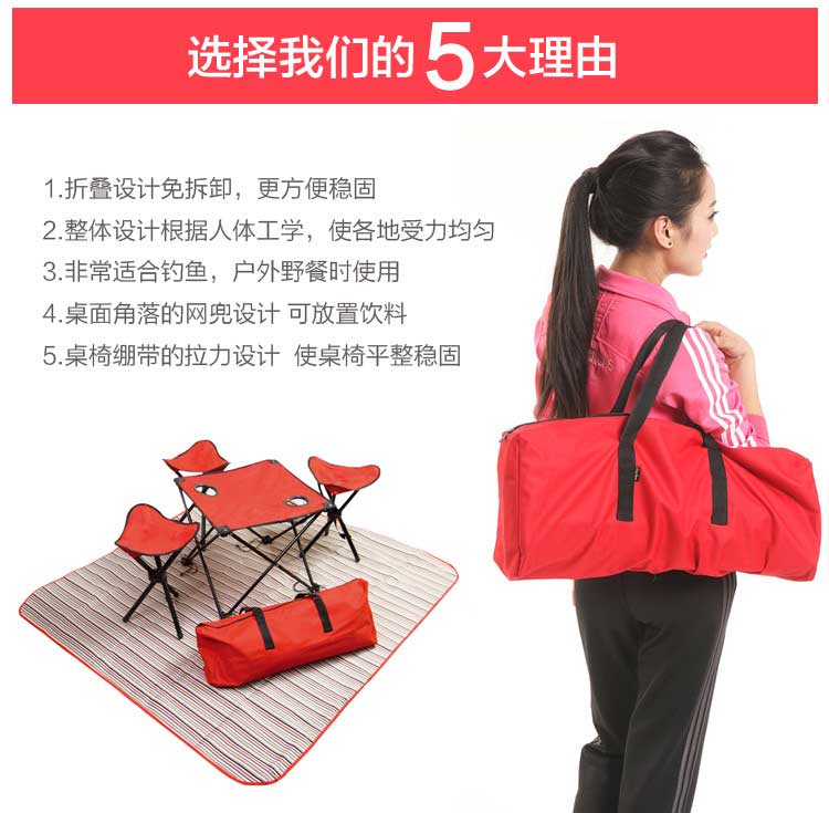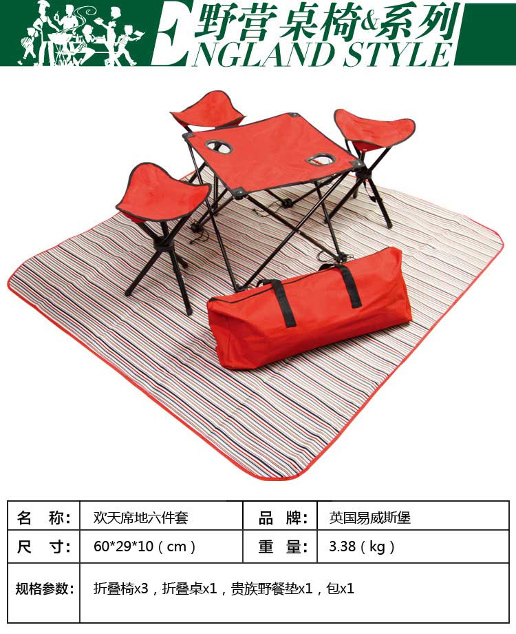 此裝備涵蓋了桌子、凳子、野餐墊,折疊收置后體積小巧便于攜帶,是全家出游或朋友聚會游玩的首選裝備!