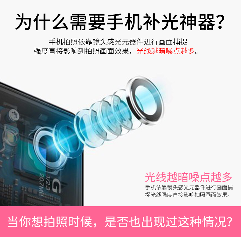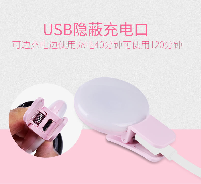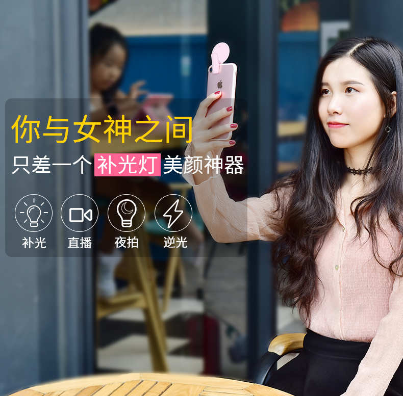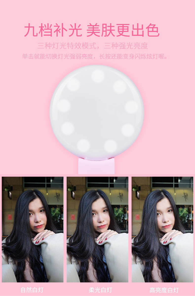 手機自拍補光燈,解決自拍光線不足照片暗淡無光等問題,小巧便于攜帶充電款。