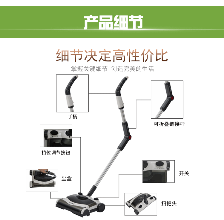 6.全包膠封閉手柄,可彎曲連接桿,不需要彎腰即可清潔桌底、沙發(fā)底清潔。