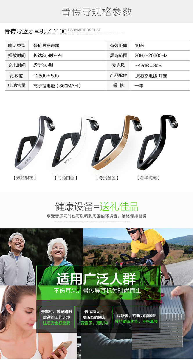 骨傳導藍牙運動耳機,不用耳朵,保護鼓膜,不傷耳朵