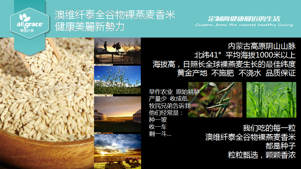 澳維纖泰裸燕麥香米生長在北緯41°,海拔1000米以上,沒有受到工業污染的中國西部內蒙古高原地帶。生長過程堅持有機栽培的耕種方式。