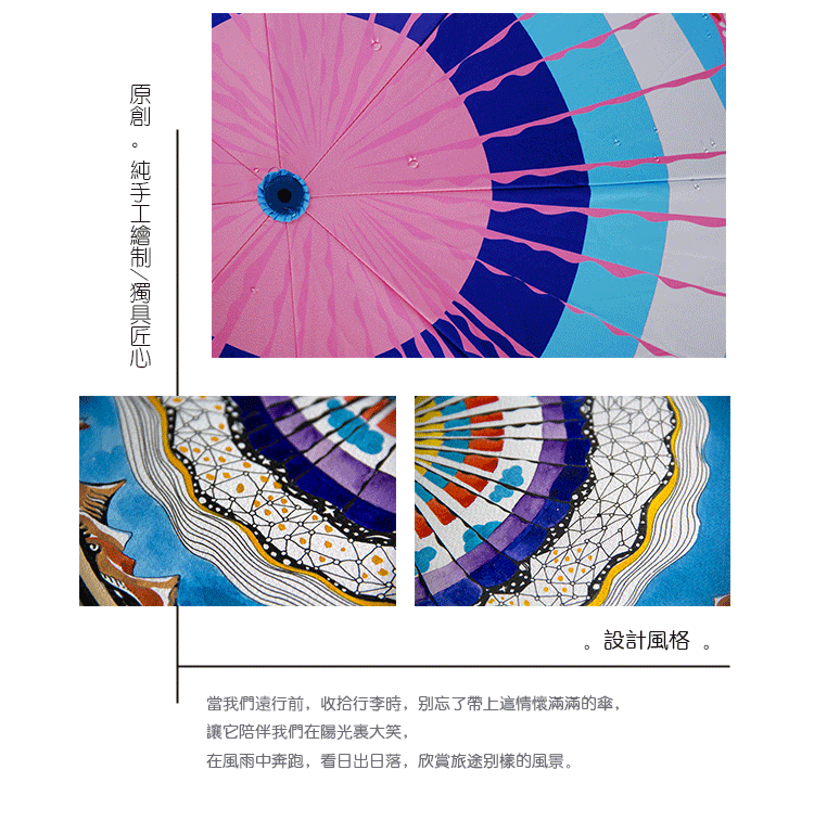 當我們遠行前,收拾行李時,別忘了帶上這情懷滿滿的傘,讓它陪伴我們在陽光里大笑,在風雨中奔跑,看日出日落,欣賞旅途別樣的風景。
