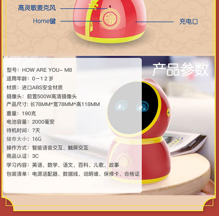 Howareyou好兒優兒童智能機器人M8宮延版16G語音對話早教學習互動