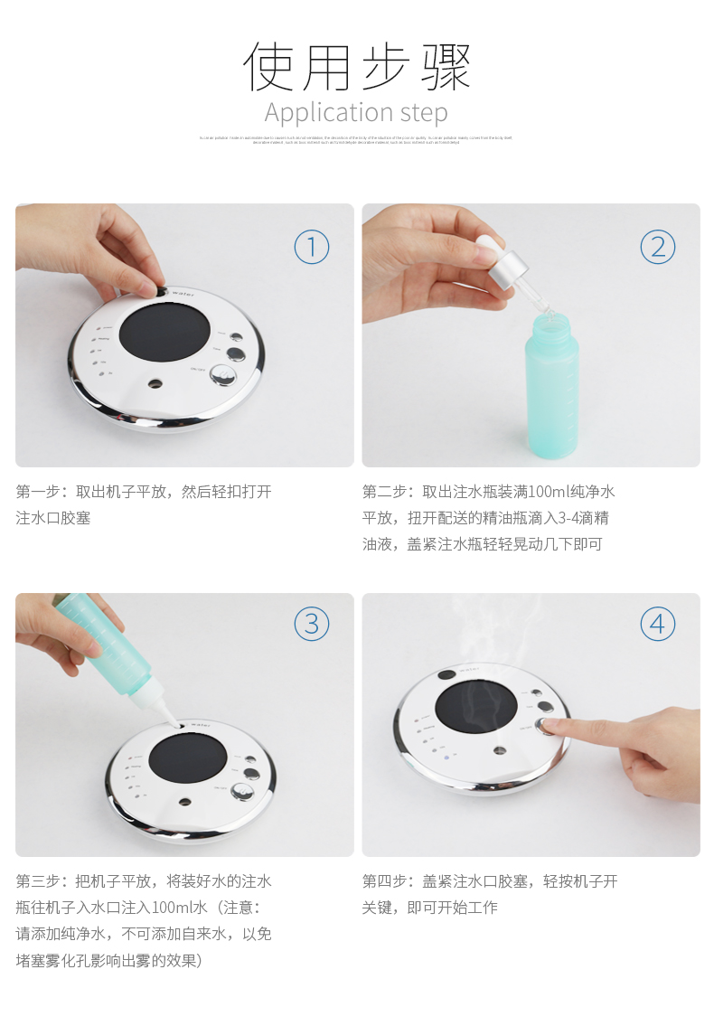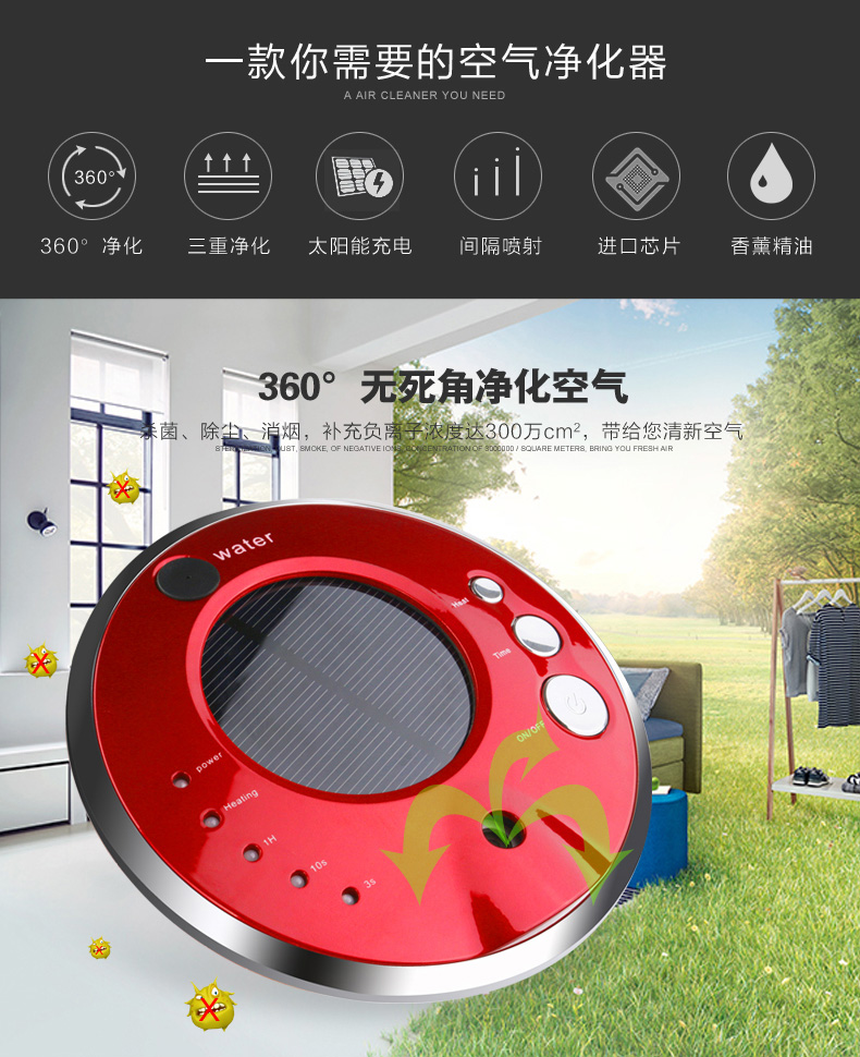 5、清新空氣:天然植物萃取植物香薰精油,氣味溫和、芳香怡人,有芳香療法之效果,有效的凈化車內、家居、辦公、休閑娛樂等場所空氣,使空氣清新宜人。