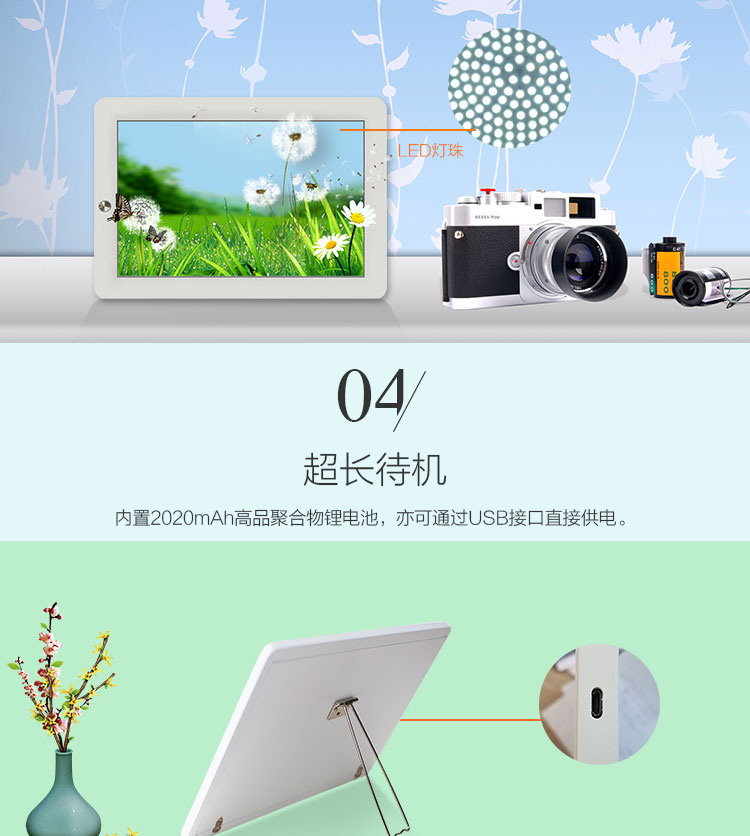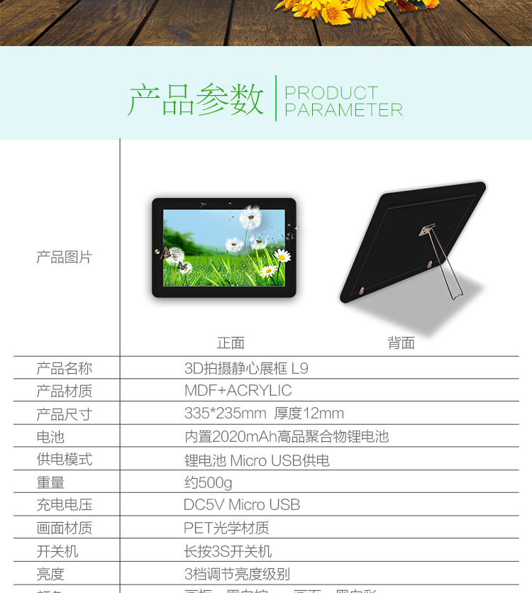 人體溫濕感應,3檔亮度級別,可擺放,可懸掛