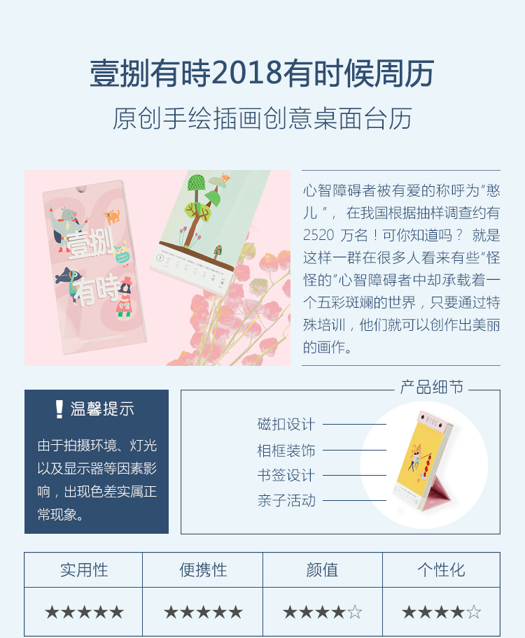 產品類別:2018新年歷 日歷 臺歷 掛歷 文化 創意 智障 兒童 親子互動 手繪涂鴉
