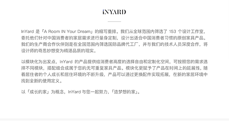 InYard跨界合作面料設計師RUI FENG,高難度工藝-采用進口雙面梭織,打造生活中的完美質感 舉報 極有家認證[原創設計]:專屬設計,限量生產,只為你造
