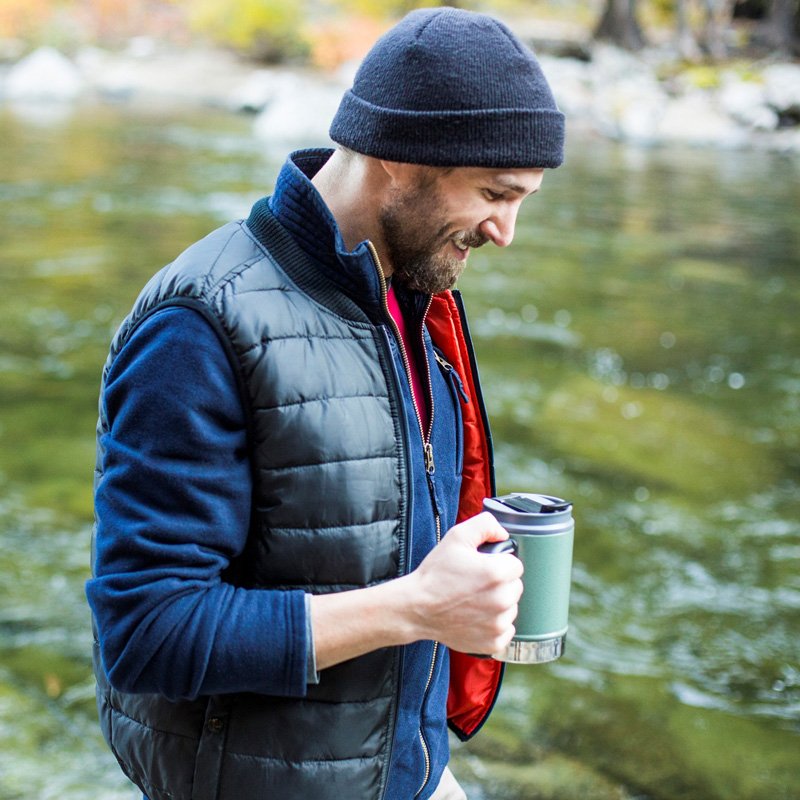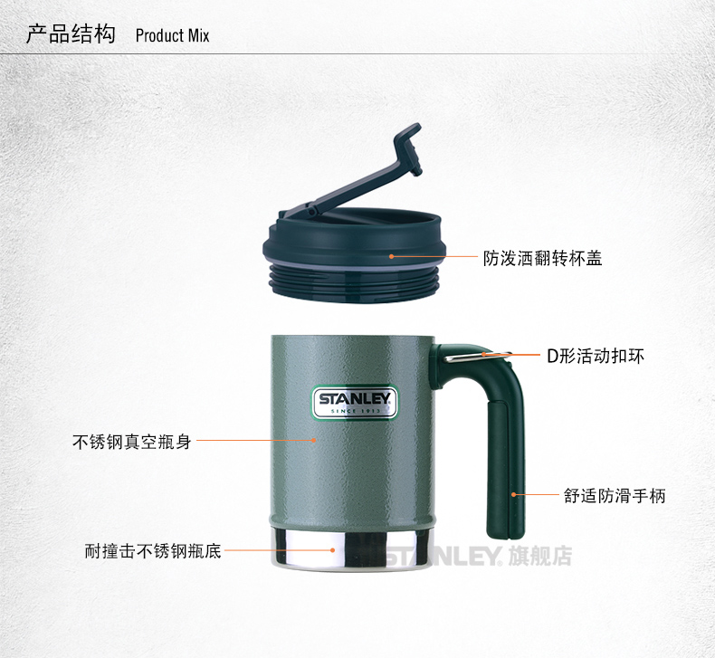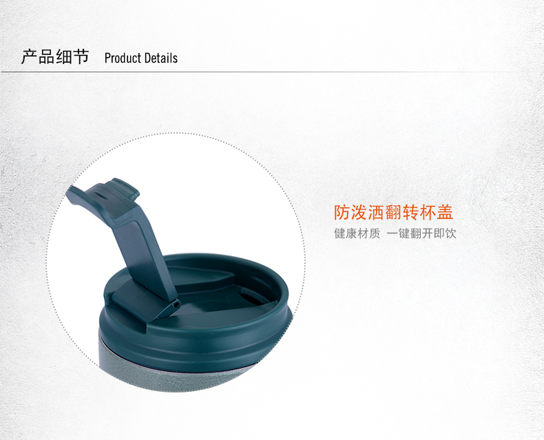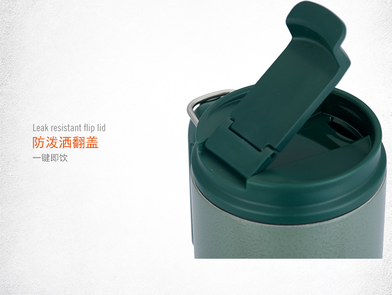 雙層不銹鋼 舒適防滑手柄 翻蓋即飲