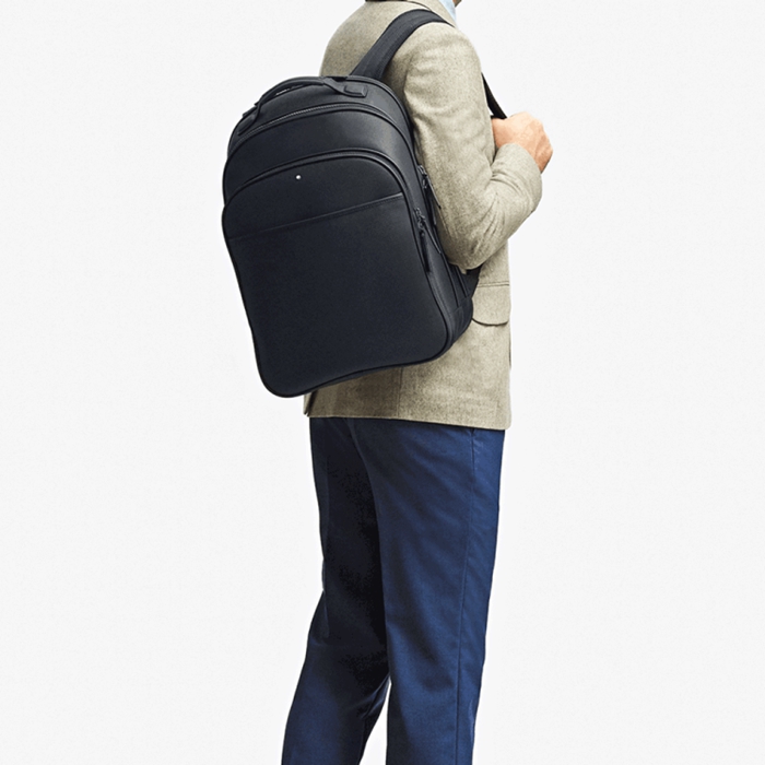 Montblanc萬寶龍 皮質黑色風尚系列背包 雙肩包