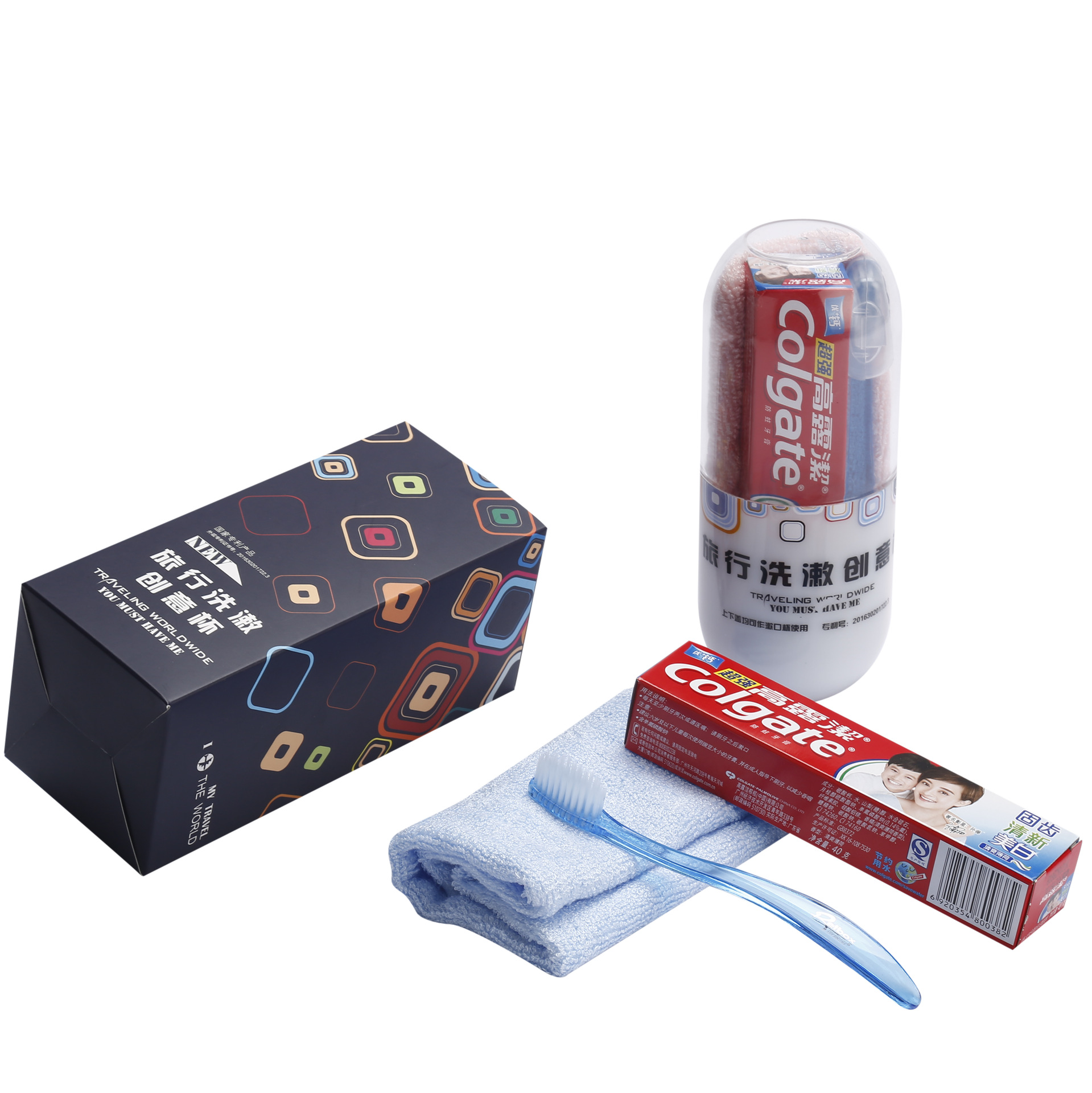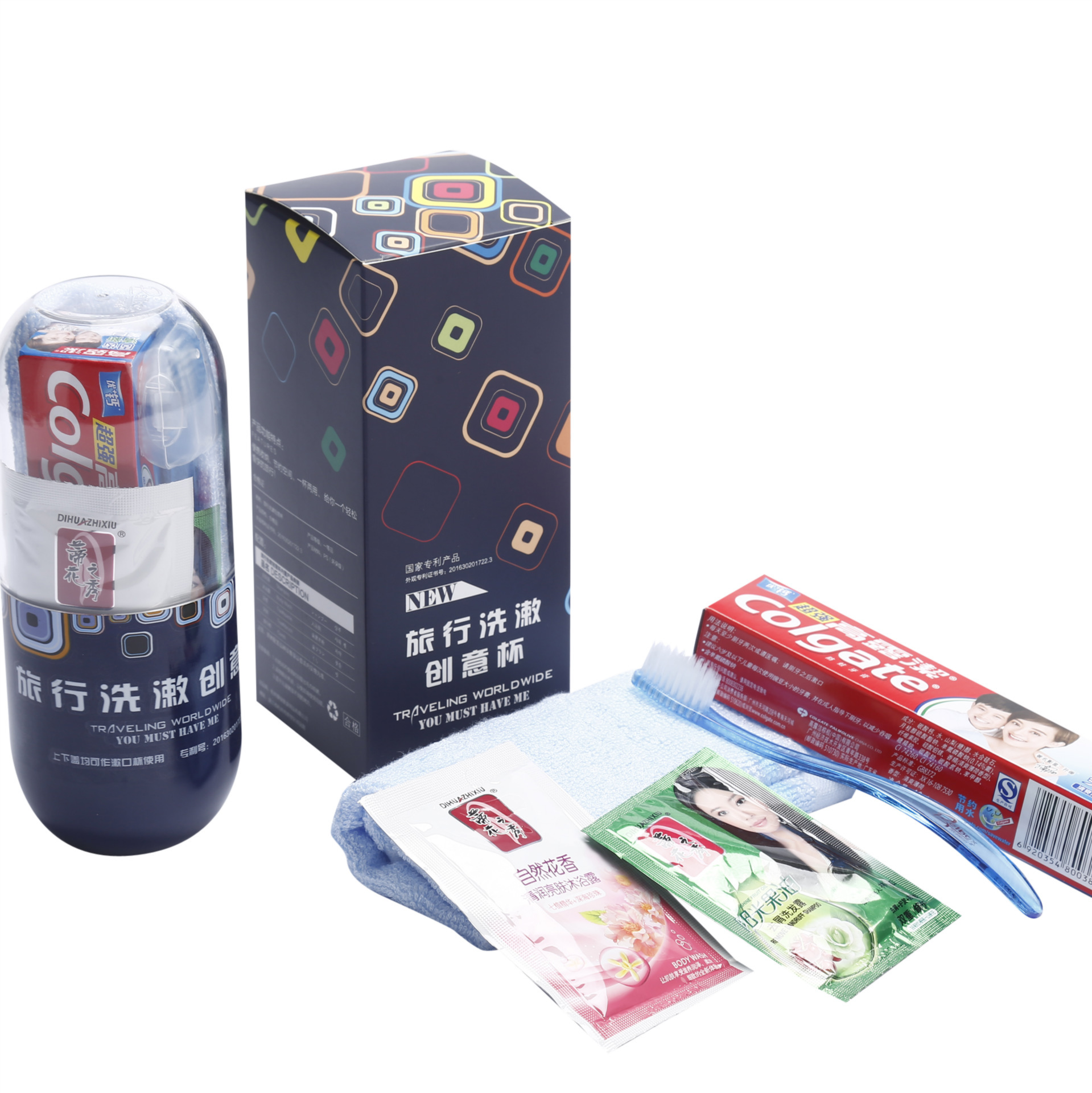 洗發(fā)水+沐浴露+牙膏30g +小牙刷 +毛巾+兩用漱口杯