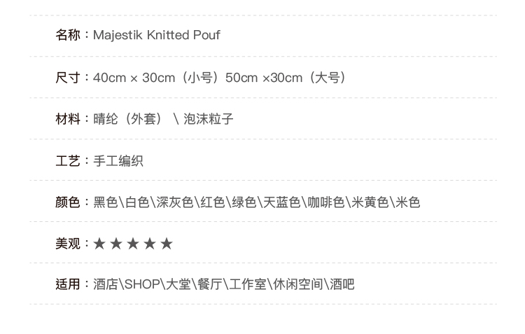 極簡北歐創意針織蒲團裝飾腳凳矮凳抱枕配飾 舉報 極有家認證[原創設計]:專屬設計,限量生產,只為你造 商家承諾:提供“免費送裝”服務,百城內包物流、包配送、包安裝