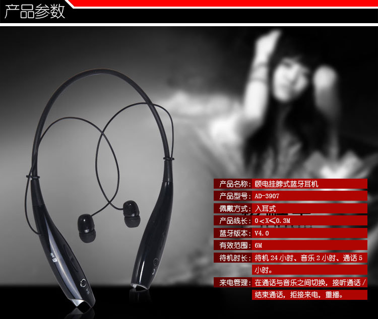 1、通話音樂無限控制,搭配智能手機使用,無線更自由;
