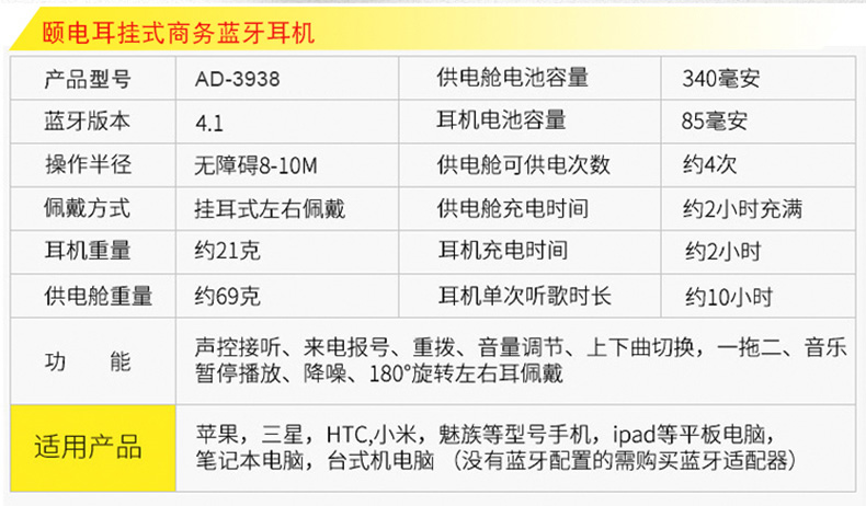 產(chǎn)品名稱:耳掛式商務(wù)藍牙耳機