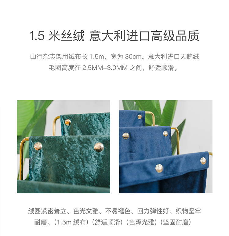 [InYard原創]山行雜志架/北歐鍍金天鵝絨收納架/客廳臥室儲物架 舉報 極有家認證[原創設計]:專屬設計,限量生產,只為你造 商家承諾:提供“免費送裝”服務,百城內包物流、包配送、包安裝