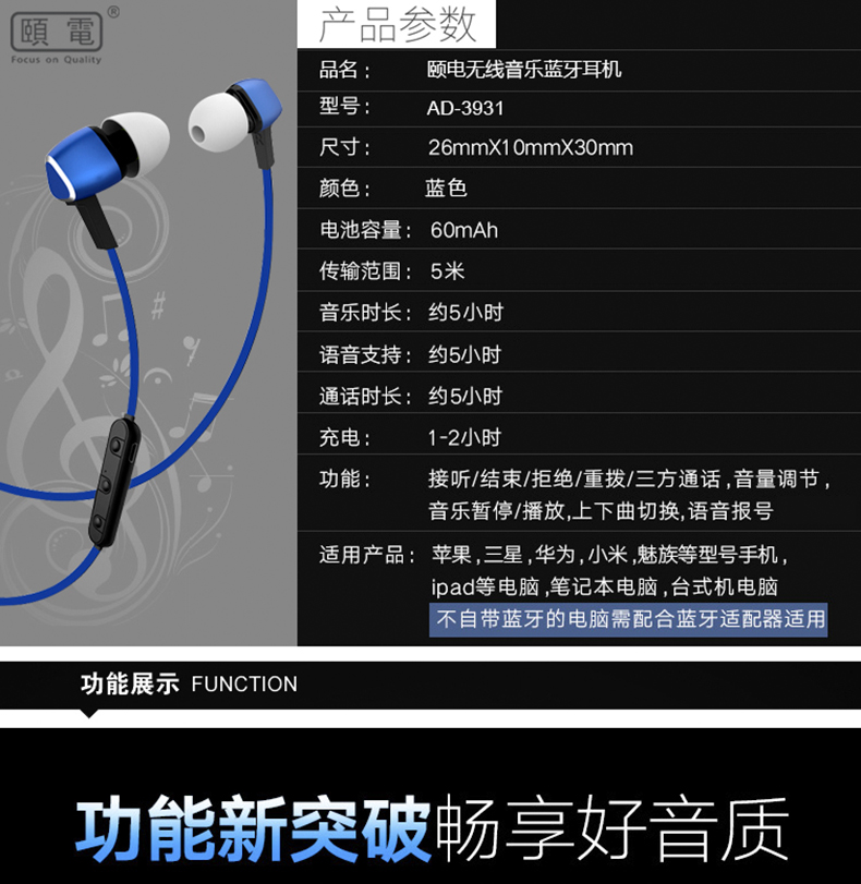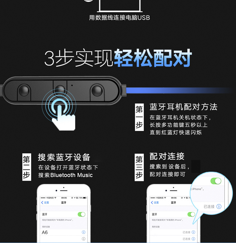 3、藍(lán)牙4.1版本,多媒體兼容,來電播報,清晰音質(zhì);