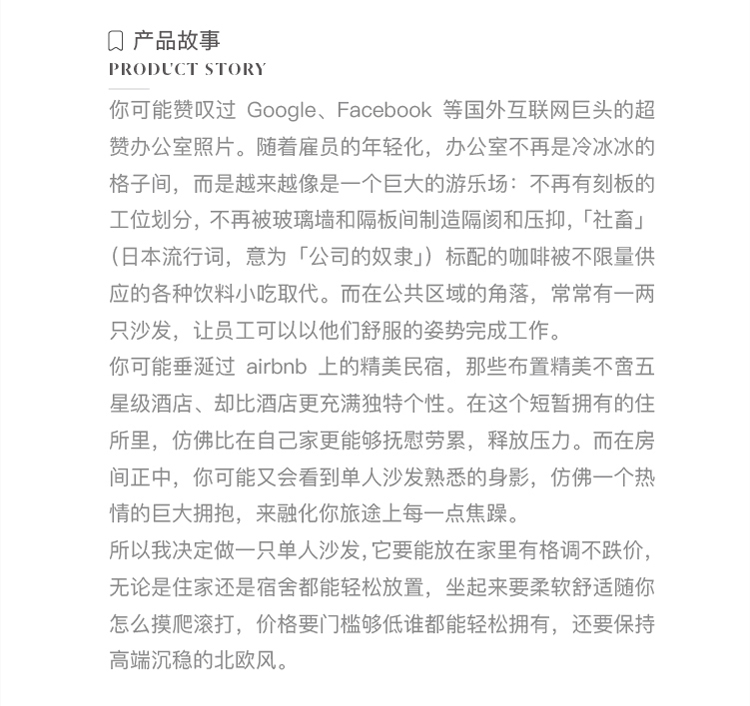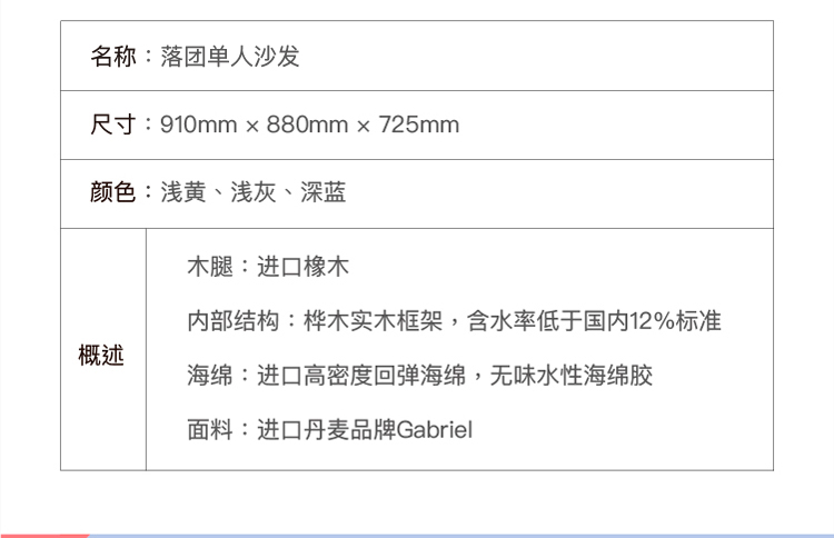 單人沙發/國外設計極簡約進口布藝現代北歐實木海綿 舉報 極有家認證[原創設計]:專屬設計,限量生產,只為你造 商家承諾:提供“免費送裝”服務,百城內包物流、包配送、包安裝