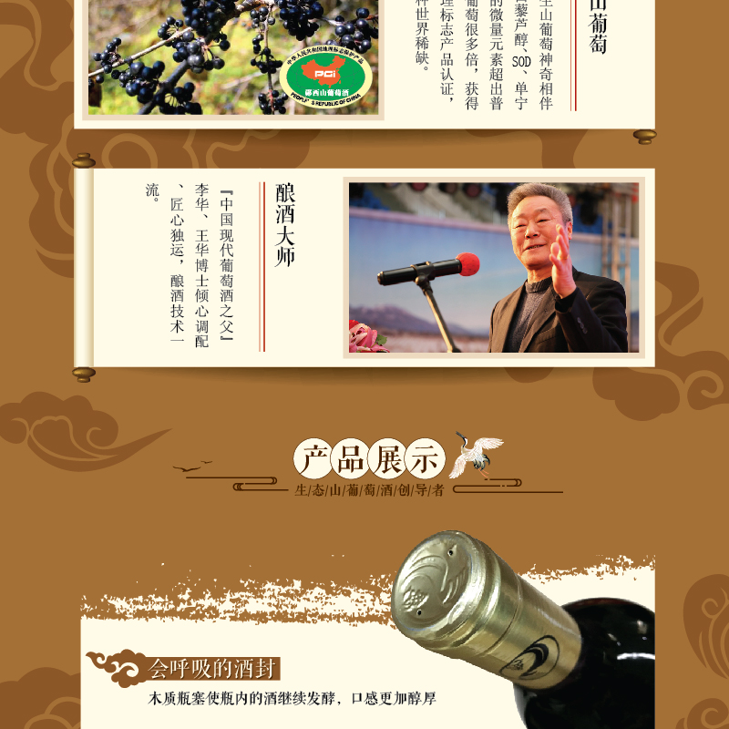 武當(dāng)紅生態(tài)山葡萄酒,產(chǎn)自著名的梅諾克酒莊,其擁有20萬畝的野生葡萄基地。武當(dāng)紅有機(jī)野生山葡萄酒的單寧含量是普通葡萄酒的10倍,白藜蘆醇含量是普通葡萄酒的2-3倍。白藜蘆醇被稱為植物抗毒素,對(duì)腫瘤、動(dòng)脈硬化、心腦血管疾病都有著不可替代的預(yù)防及治療作用。武當(dāng)紅有機(jī)野生山葡萄酒將高品質(zhì)的生活態(tài)度與品酒結(jié)合,讓生活更富有內(nèi)涵。