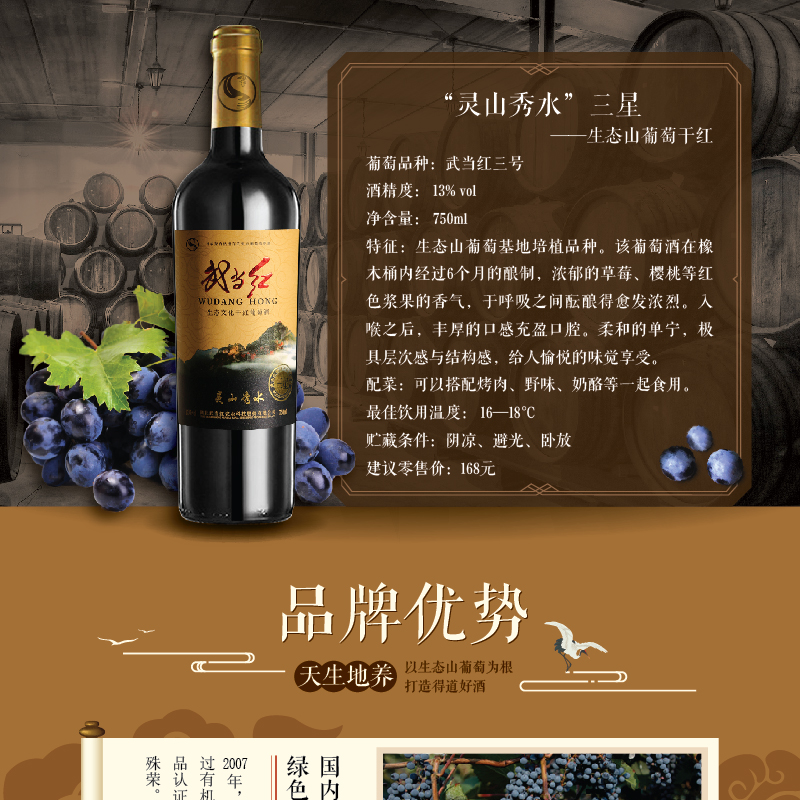 · 商品名稱:武當(dāng)紅靈山秀水—三星(兩支+皮盒) 武當(dāng)紅生態(tài)山葡萄酒靈山秀水750ml*2皮質(zhì)禮盒