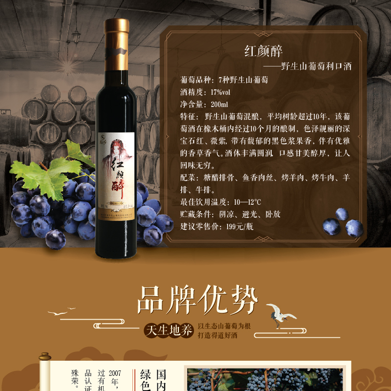 · 商品名稱:【武當(dāng)紅】紅顏?zhàn)?野生山葡萄利口酒一箱(200ml*8支)