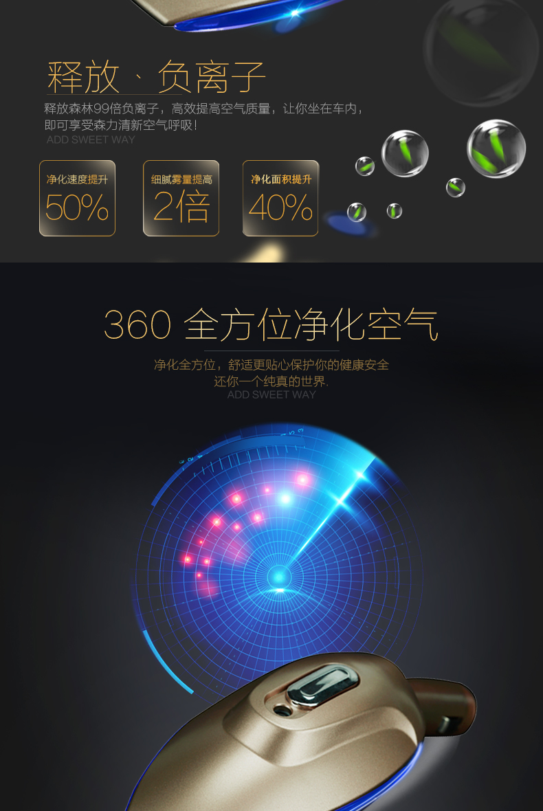 3、高效釋放負離子,車內享受森林般的新鮮空氣;