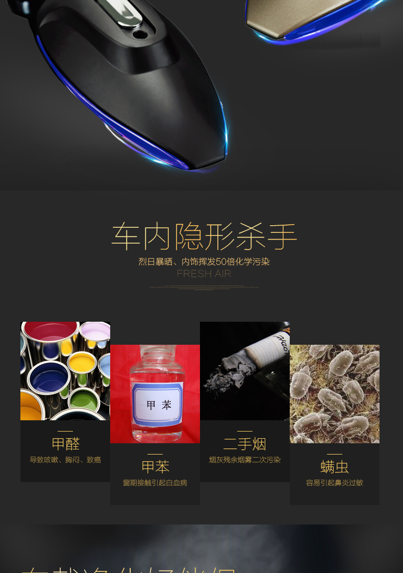 2、高效去除異味、甲醛、PM2.5、霧霾、粉塵,殺菌;