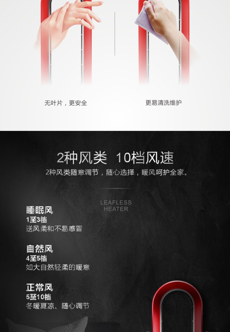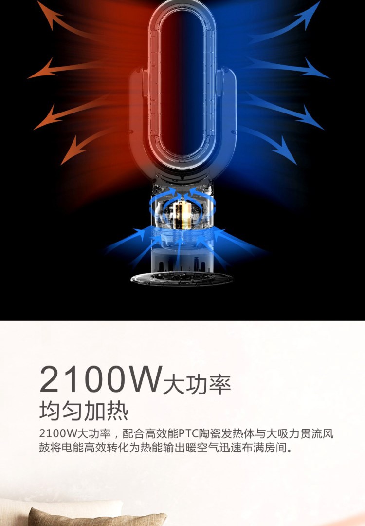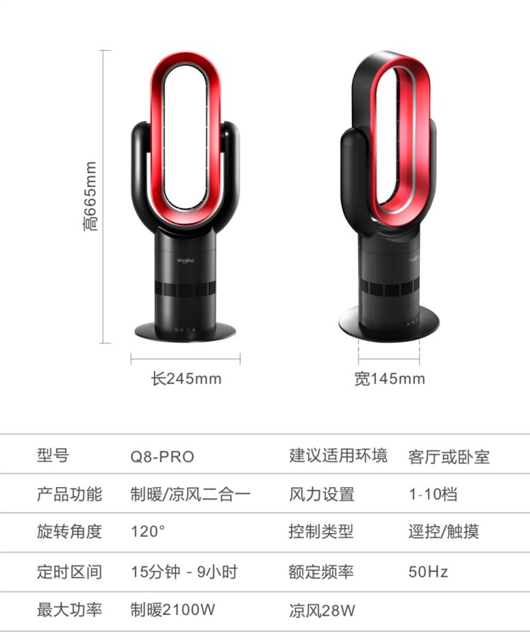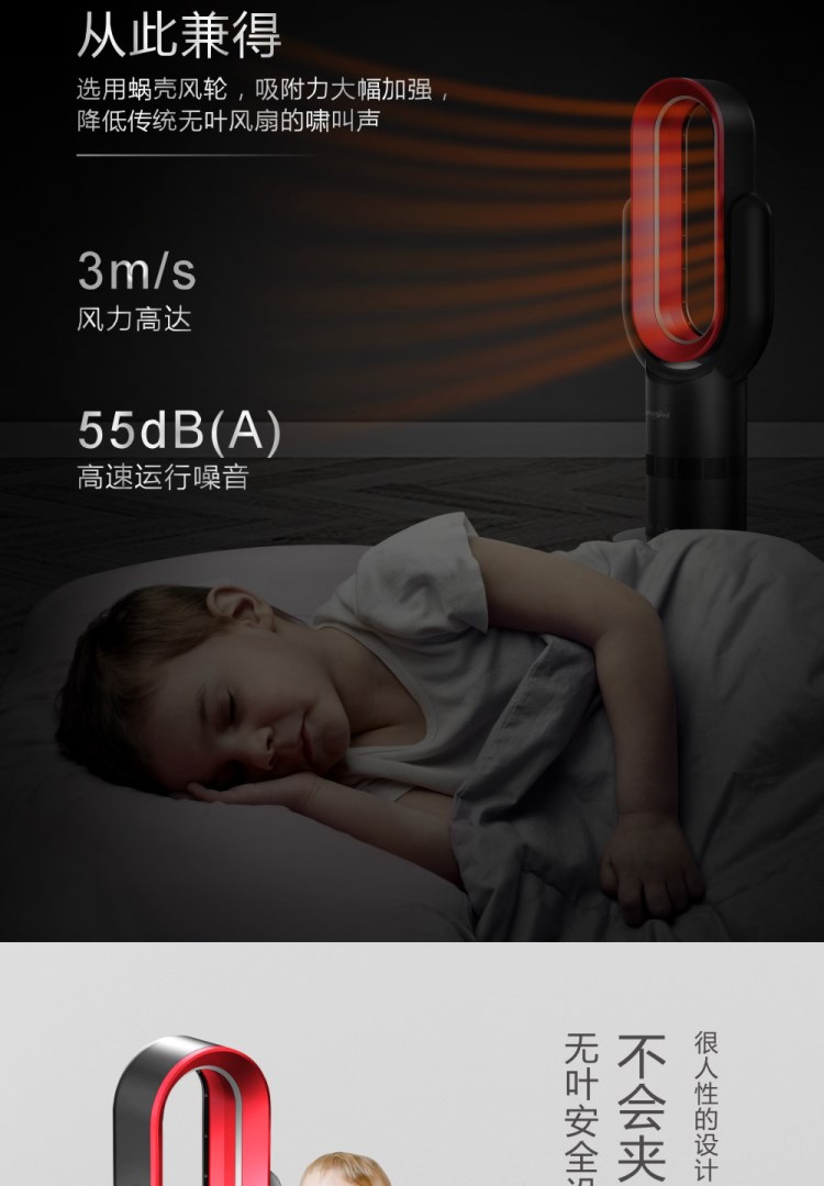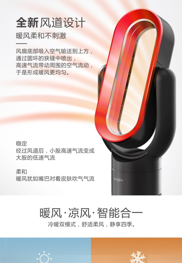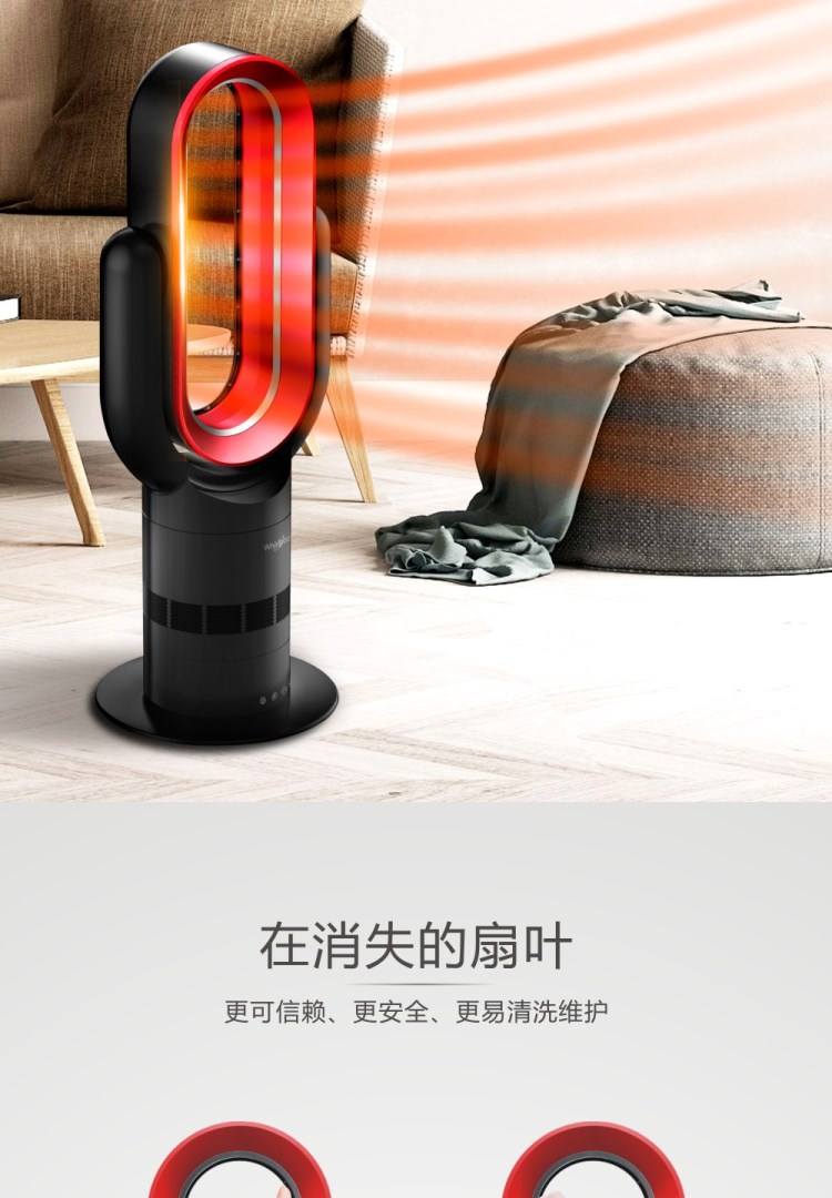 惠而浦無葉風扇超靜音冷暖兩用家用電風扇立式速熱取暖器暖風機