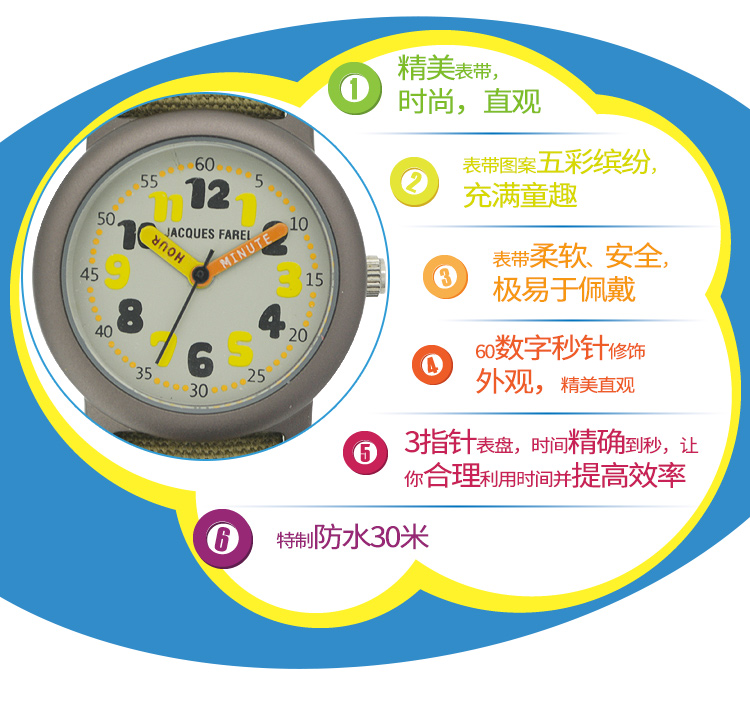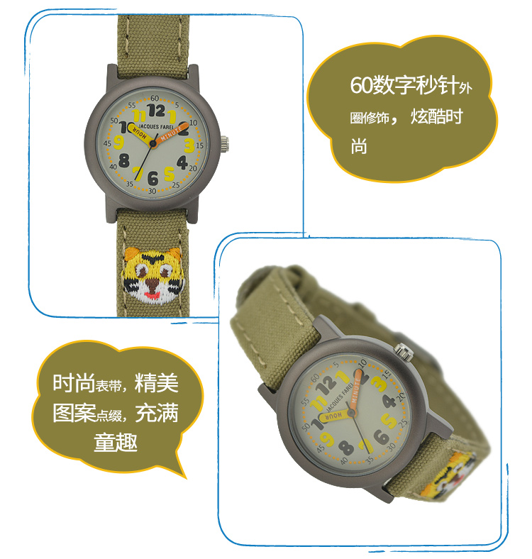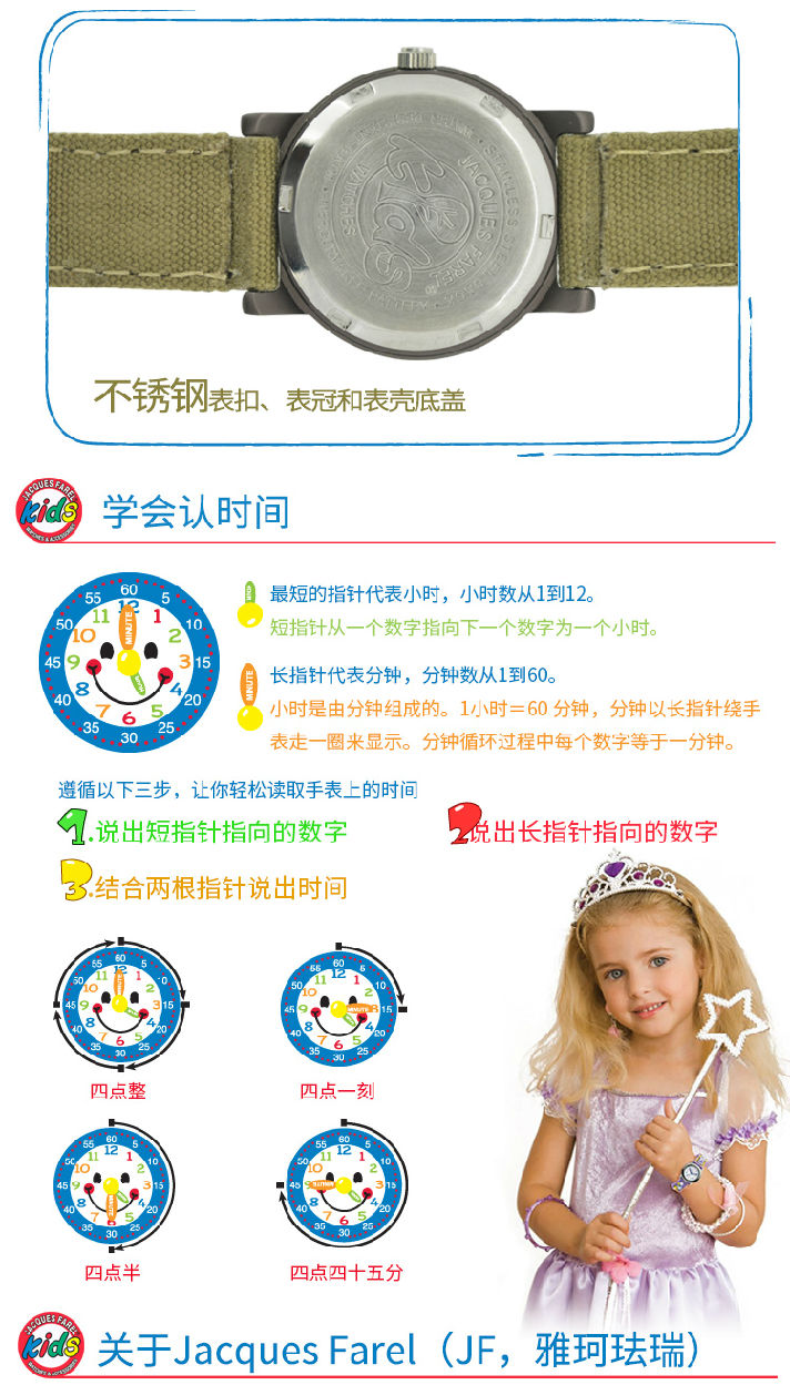 雅珂琺瑞兒童手表 時尚表帶精美圖案糖醋時尚 軍綠色