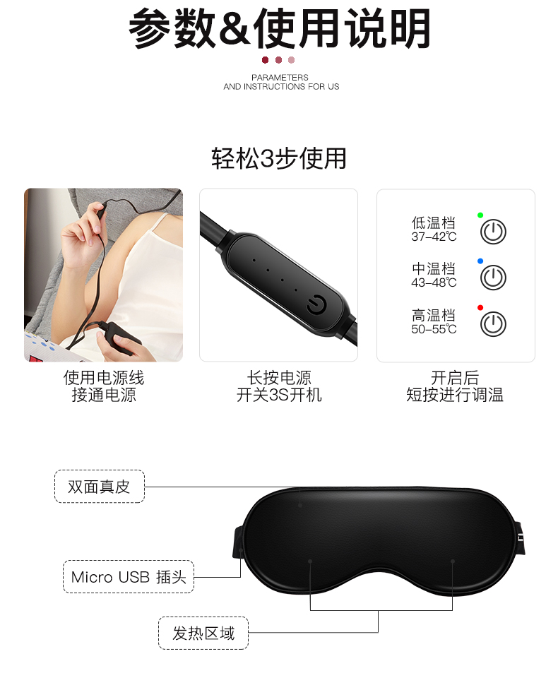 三檔溫度:低溫37-42℃、中溫43-48℃、高溫50-55℃