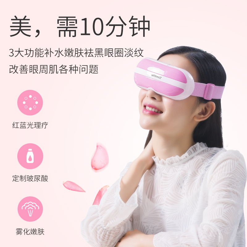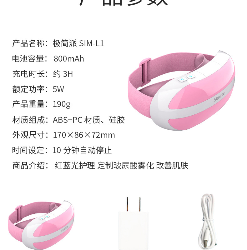 眼部美容儀 去黑眼圈眼袋神器 噴霧補水嫩膚 紅藍光淡化細紋美眼儀 粉紅色