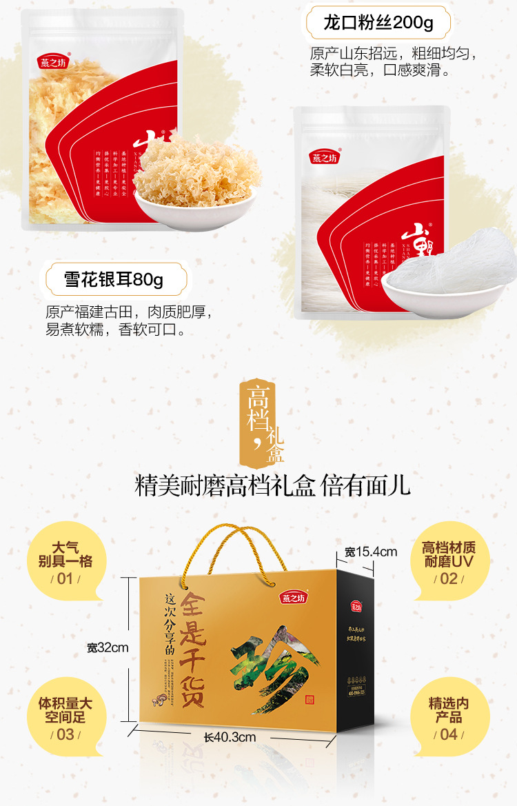 古田翠屏湖雪花銀耳80g;招遠海濱龍須粉絲200g