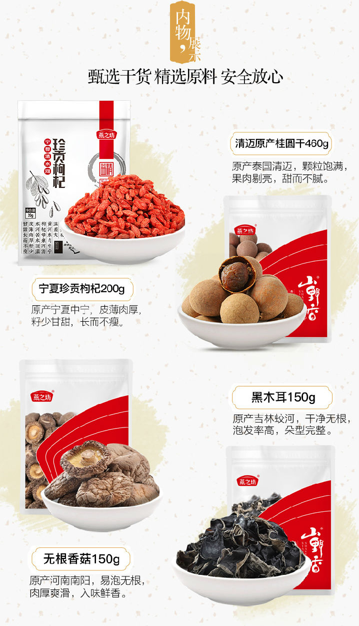 寧夏清水河珍貢枸杞200g;泰國清邁原產桂圓干460g ;