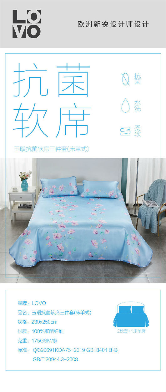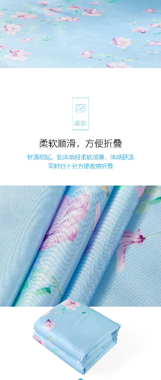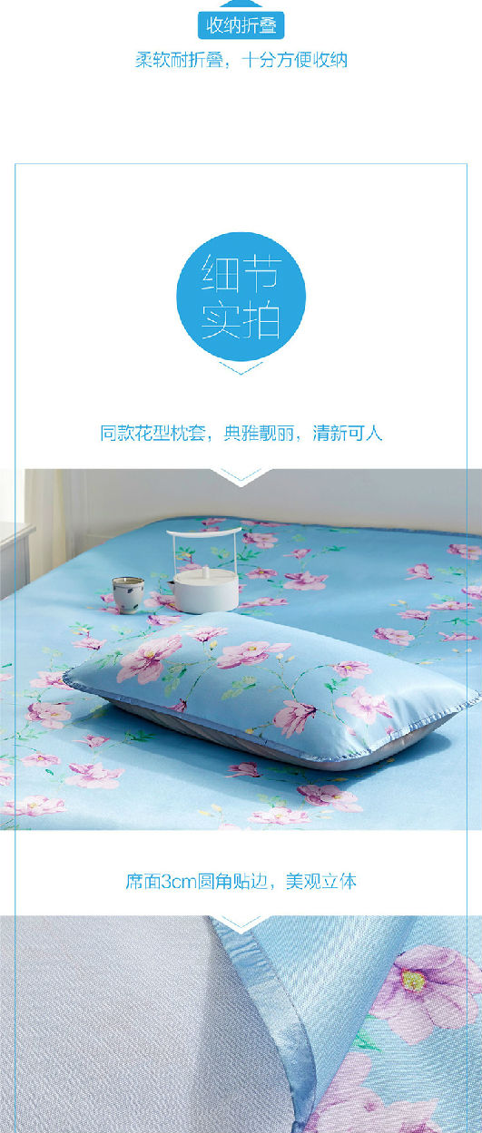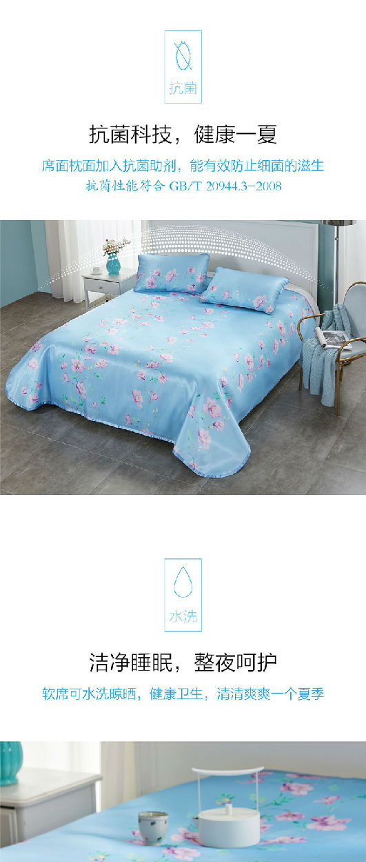 席面枕面加入抗菌助劑,能有效防止細菌的滋生;軟席可水洗晾曬,健康衛生,清清爽爽一個夏季;材質細膩,如床單般柔軟順滑,體感舒適,同時也十分仿版收納折疊。