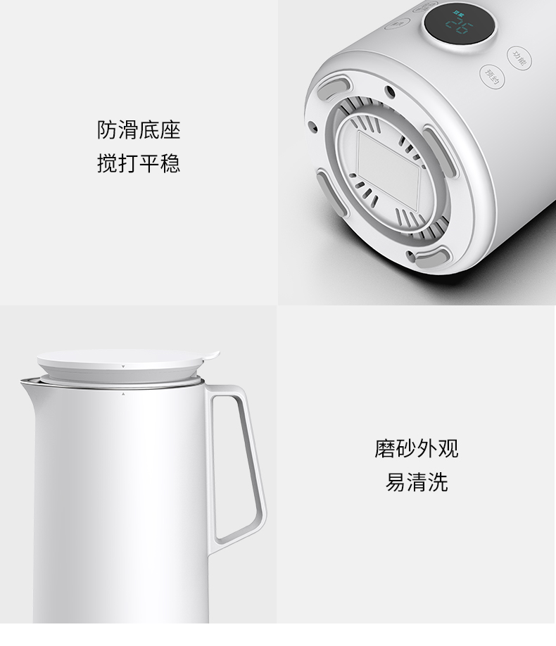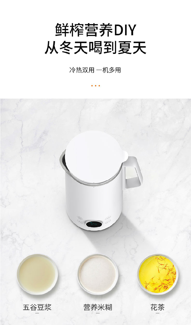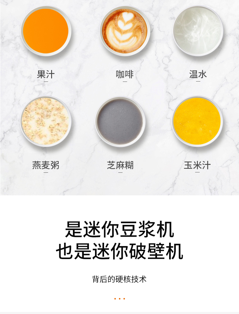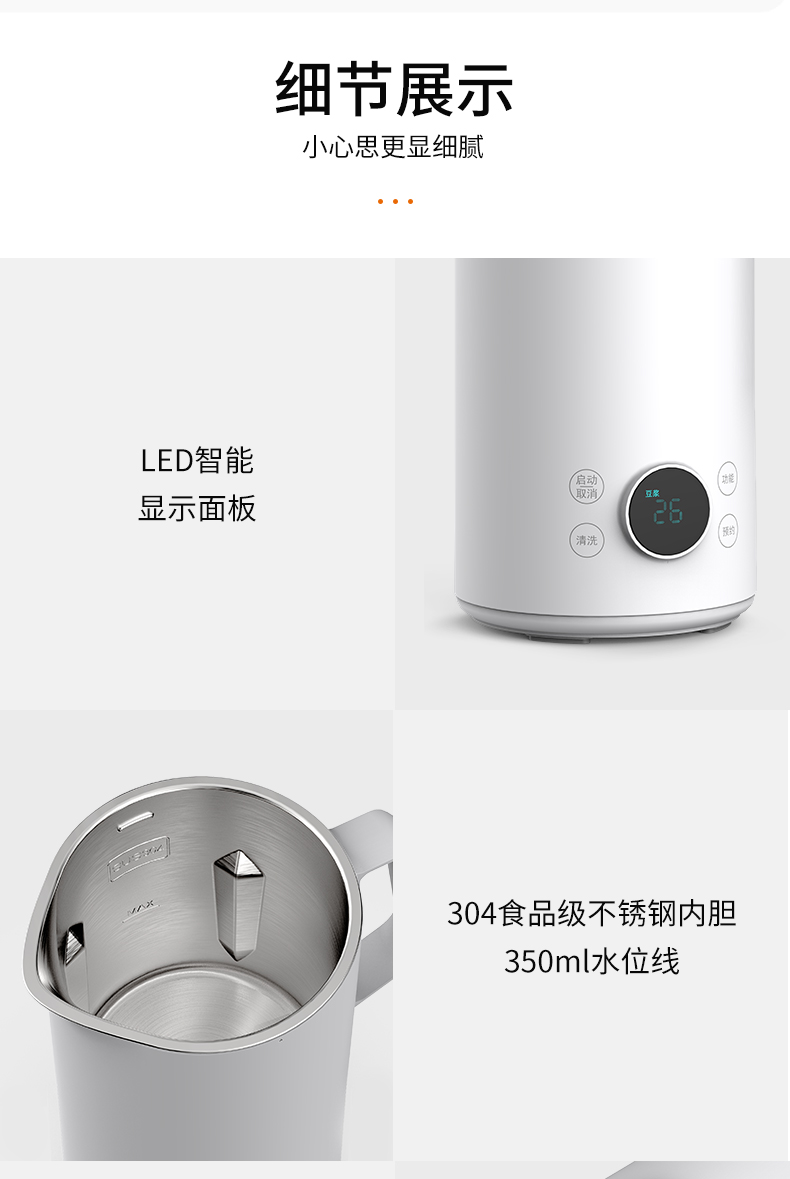 1、功能多樣,打豆漿、榨果汁、燒開水、做輔食、保溫等 2、打豆漿無需泡豆、豆漿細膩無需濾渣。 3、每分鐘28000轉,破壁標準 4、精致小巧、液晶顯示 5、一鍵清洗功能,配送清潔刷讓清洗更方便