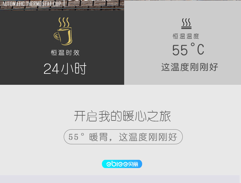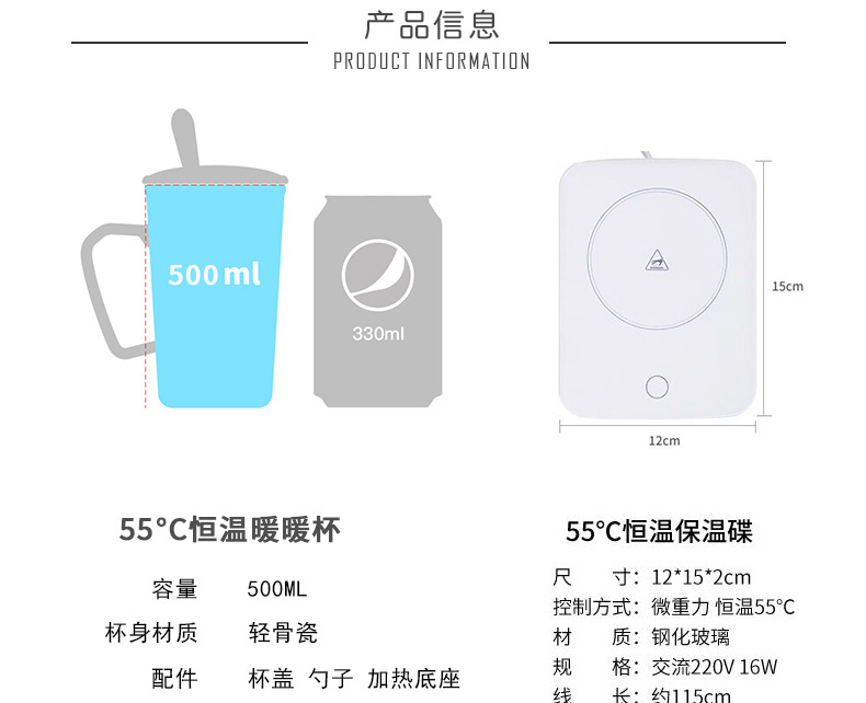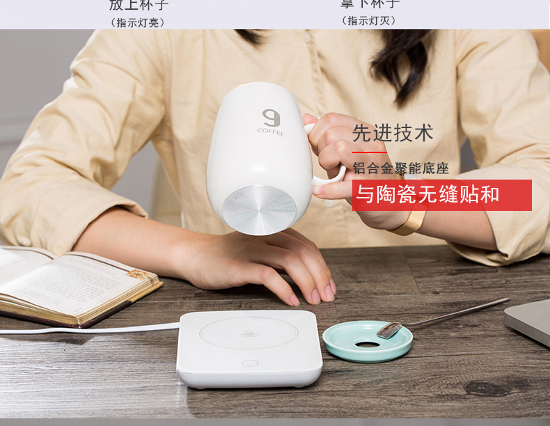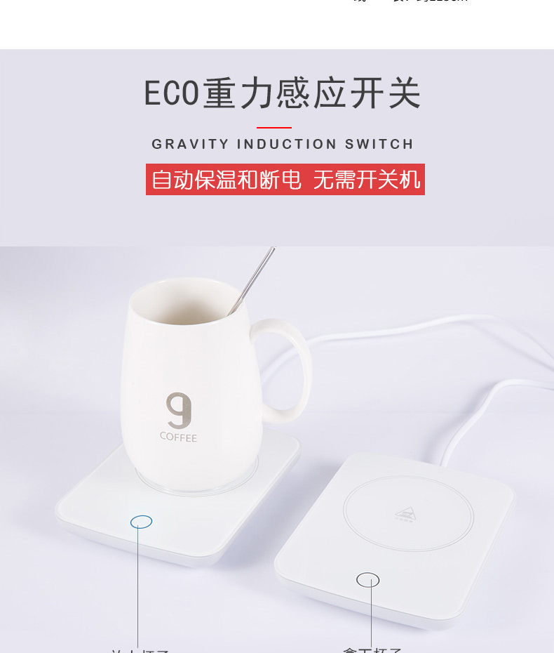 恒溫50~60℃之間 ;專利合金導熱體; 杯型可更換;高白耐高溫鋼化玻璃面板;精美禮盒。