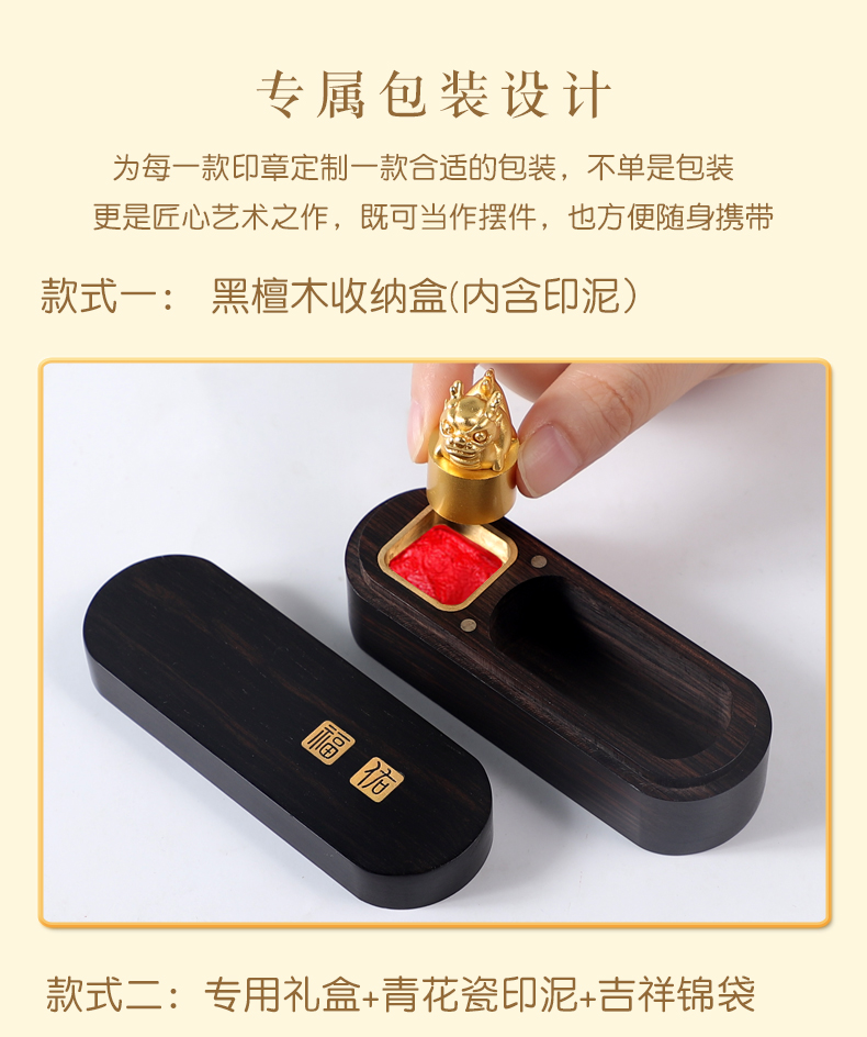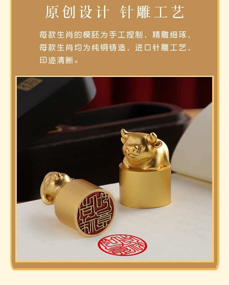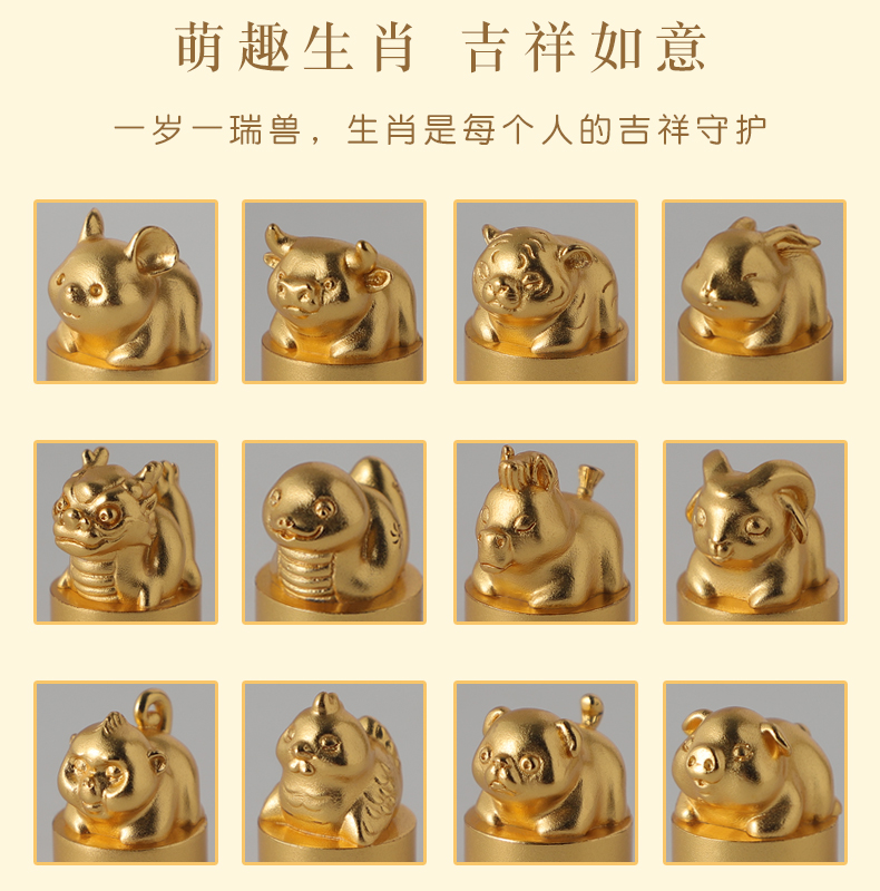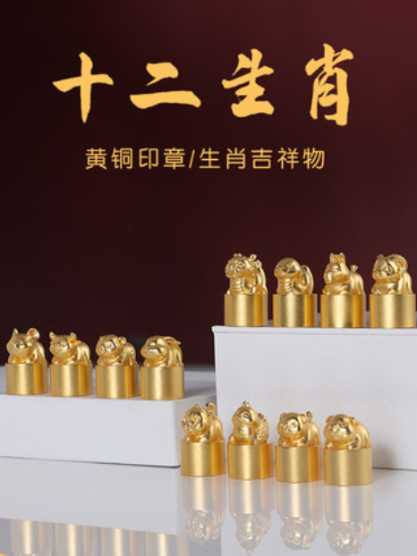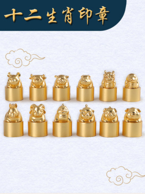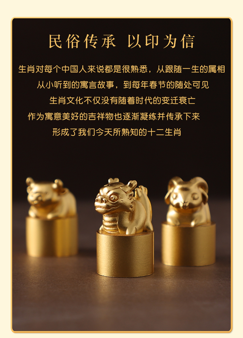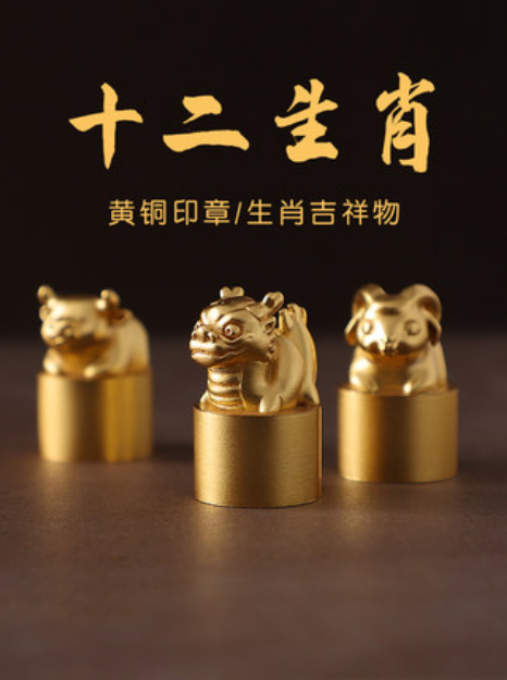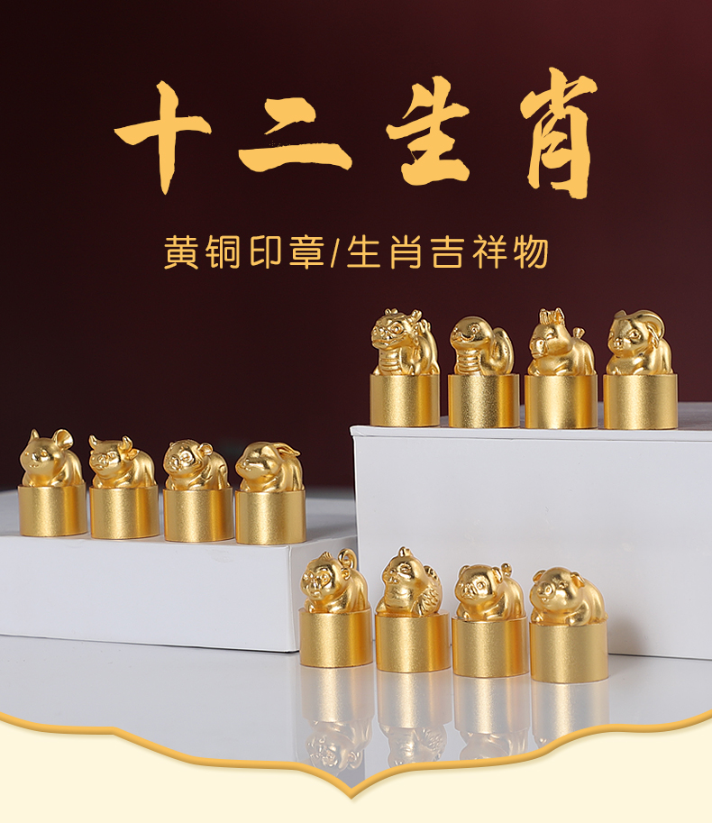 孔府印閣十二生肖黃銅印章定制,實心黃銅鑄造,可定制印底內容