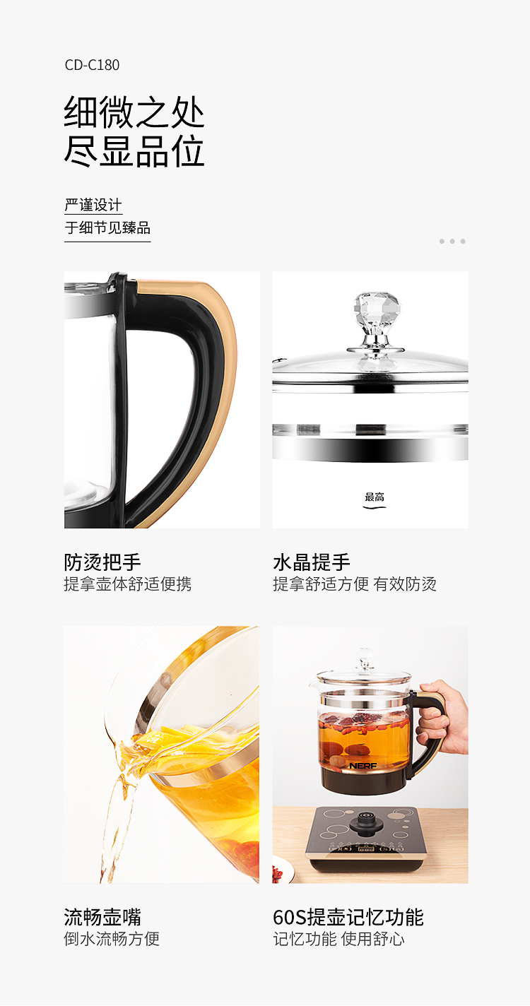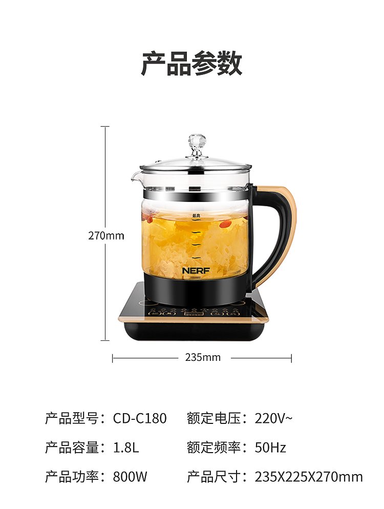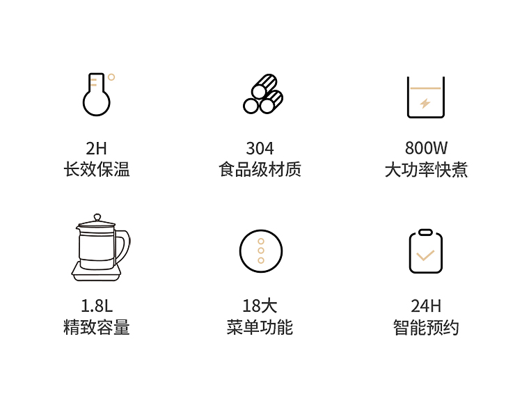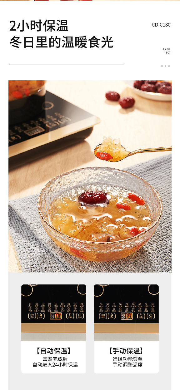 18種燉煮功能,加厚玻璃,1.8L容量,2H長效保溫
