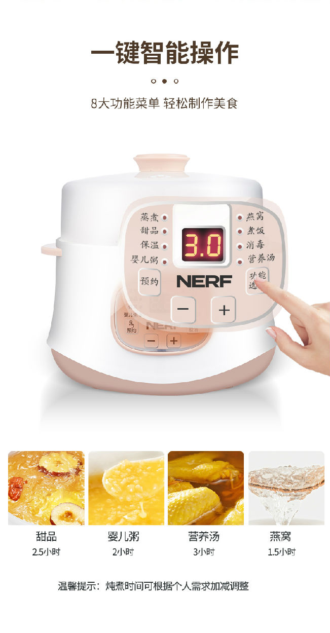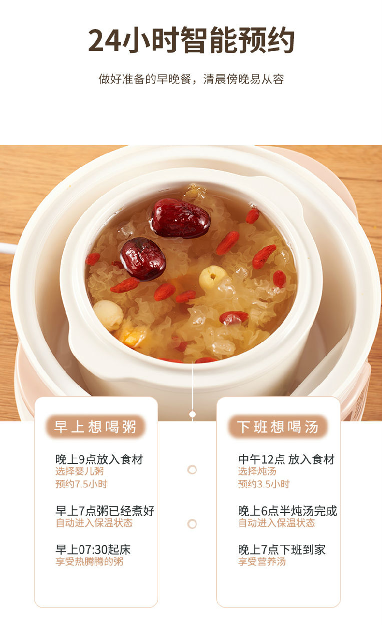 24小時預約,多功能,陶瓷內膽,斷電防干燒
