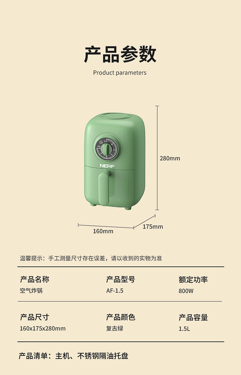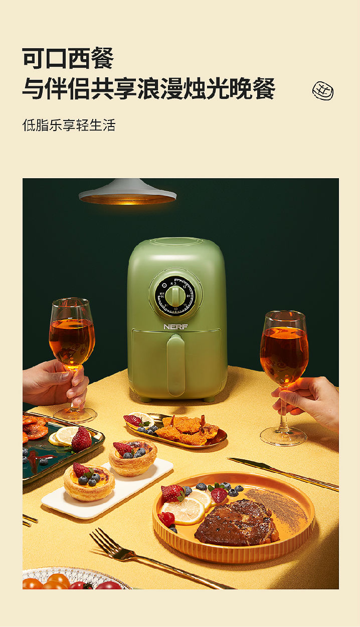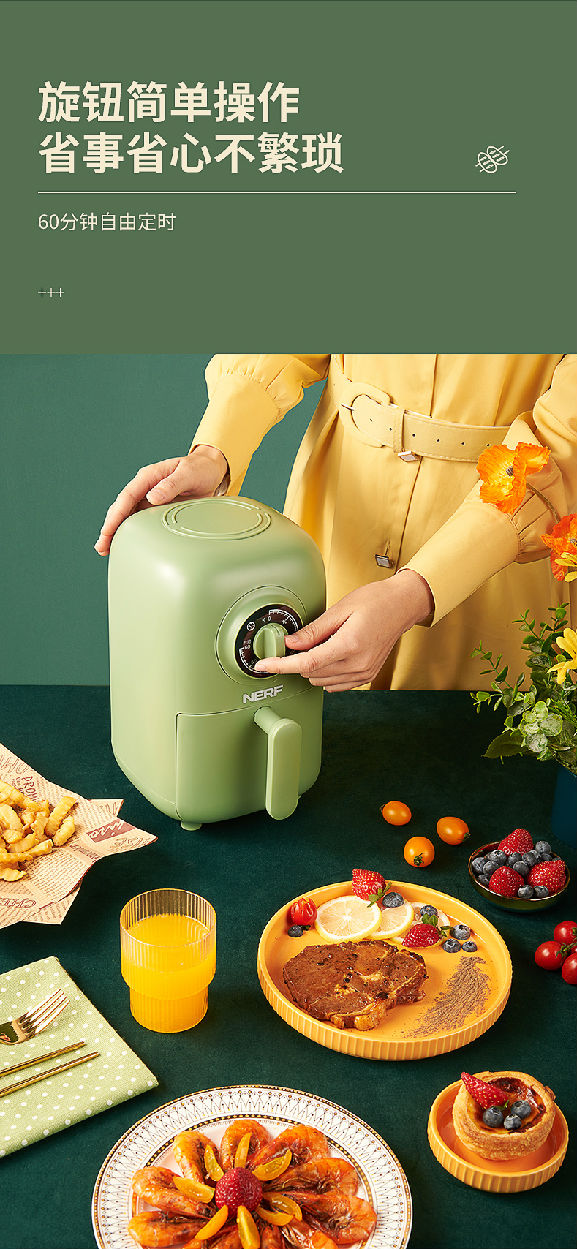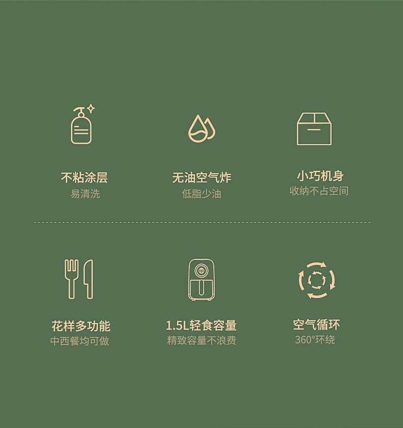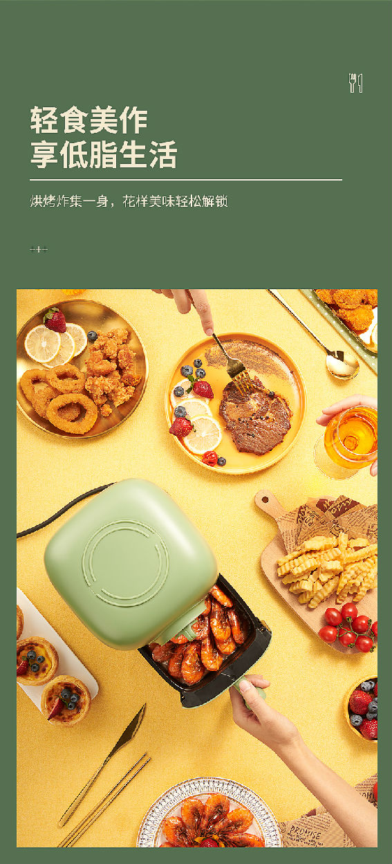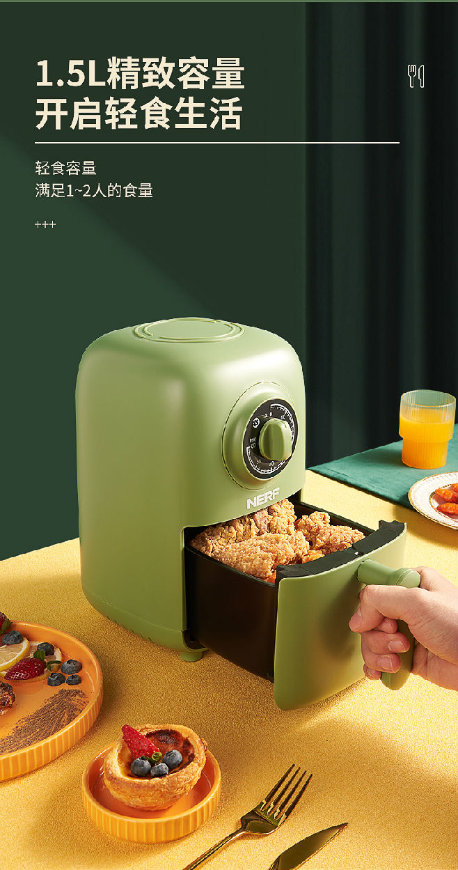 1.5L輕食容量,小巧易收納,不占涂層易清洗,低脂少油更健康